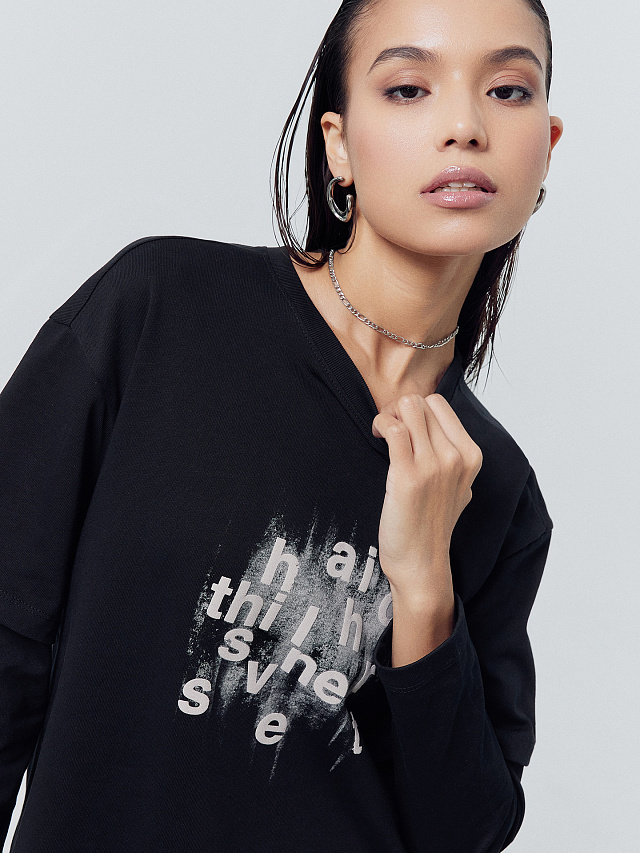 Джемпер женский черный с печатью