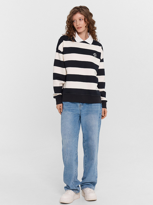 Женский джемпер оверсайз станет идеальным дополнением вашего современного гардероба. Горловина круглой формы с отложным воротником придает изделию элегантный вид, а спущенная линия плеча и углубленная пройма создают стильный и расслабленный силуэт. Длинные объемные рукава с манжетами добавляют комфорт, обеспечивая уют в прохладные дни. Изготовленный из футера с подчесом, джемпер гарантирует мягкость и тепло, делая его идеальным выбором для создания стильных и современных образов.