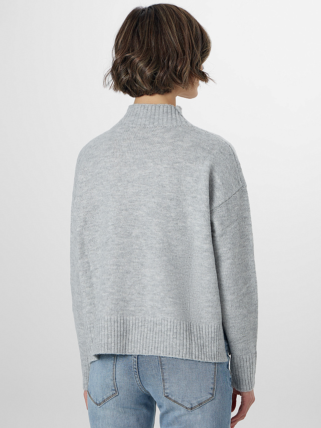 Плотное плетение материала сохраняет форму при активной носке. Эластичные волокна в составе позволяют джемперу мягко облегать фигуру, не сковывая движений. Универсальный крой сочетается с джинсами, брюками и юбками.