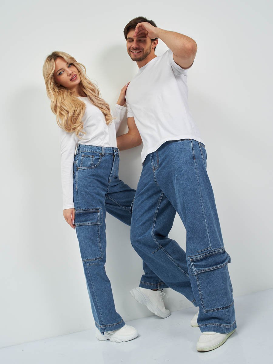 Самые ультрамодные и популярные карго джинсы на сегодня из нашей коллекции для всех . Посадка Baggy fit в этой модели это мешковатые джинсы с высокой талией, широкими штанинами по всей длине. Для получения дополнительного объема спереди под коленом сделаны две вытачки. Рекомендуется носить слегка приспущенными на бедра. По низу штанин вставлен шнур, с помощью которого при затяжке низа можно получить стиль джинсов "парашютов". Линия бокового шва прямая и шов сделан в разутюжку . Застежка на молнии. Выполнены из традиционной хлопковой ткани denim. Классическая средняя стирка "stone wash".