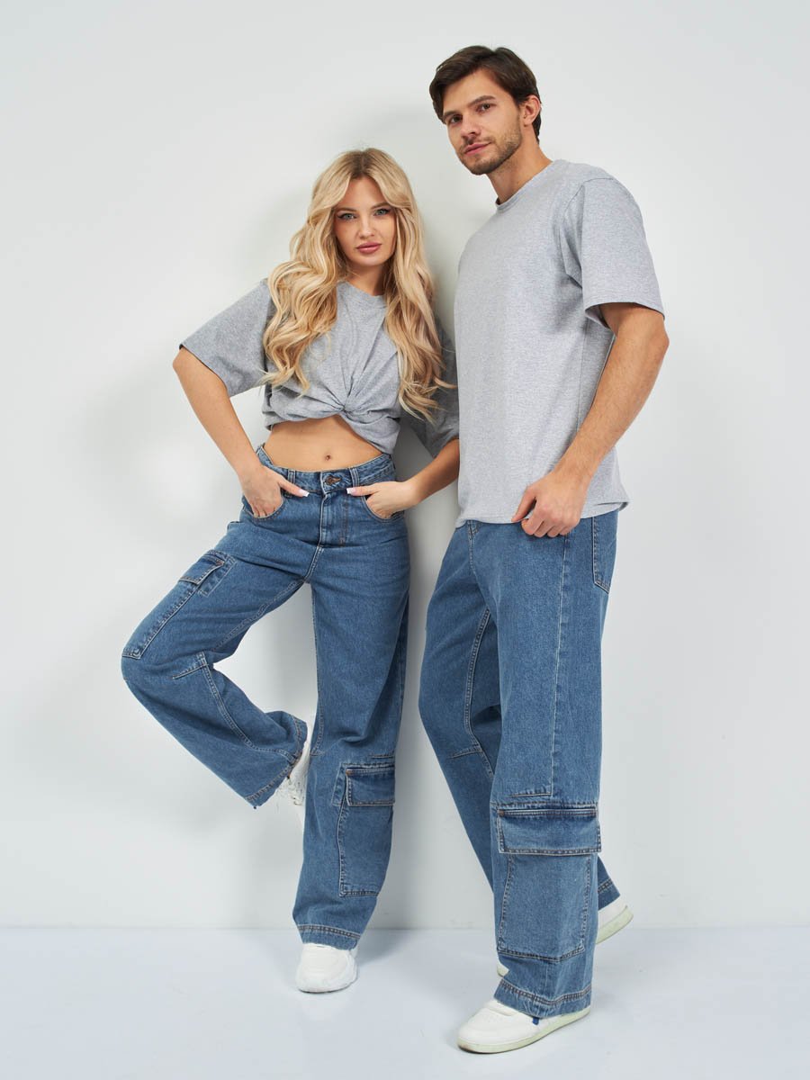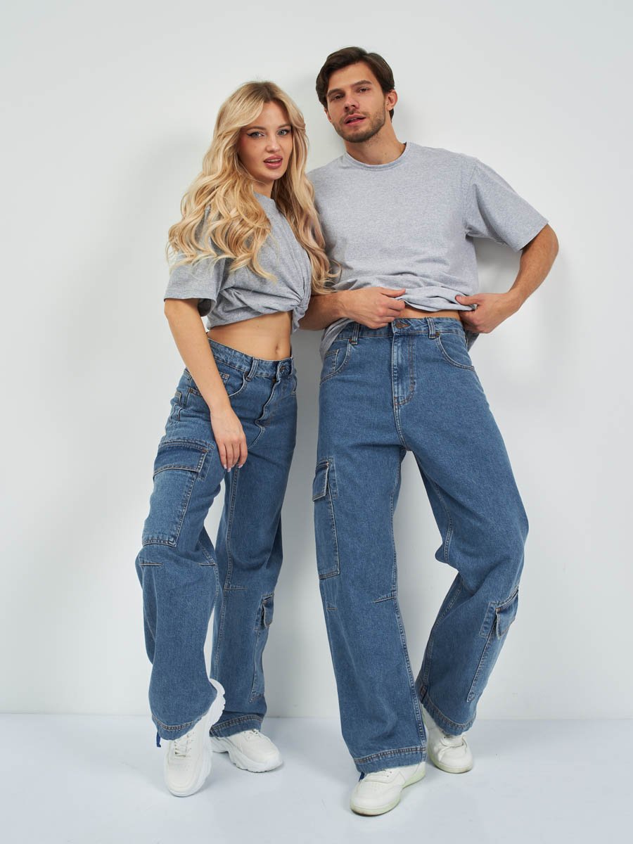 Самые ультрамодные и популярные карго джинсы на сегодня из нашей коллекции для всех . Посадка Baggy fit в этой модели это мешковатые джинсы с высокой талией, широкими штанинами по всей длине. Для получения дополнительного объема спереди под коленом сделаны две вытачки. Рекомендуется носить слегка приспущенными на бедра. По низу штанин вставлен шнур, с помощью которого при затяжке низа можно получить стиль джинсов "парашютов". Линия бокового шва прямая и шов сделан в разутюжку . Застежка на молнии. Выполнены из традиционной хлопковой ткани denim. Классическая средняя стирка "stone wash". Джинсы дополнительно чуть-чуть подкрашены в желтый цвет для получения эффекта "GET DIRTY", т.е. эффекта запачканных джинсов.