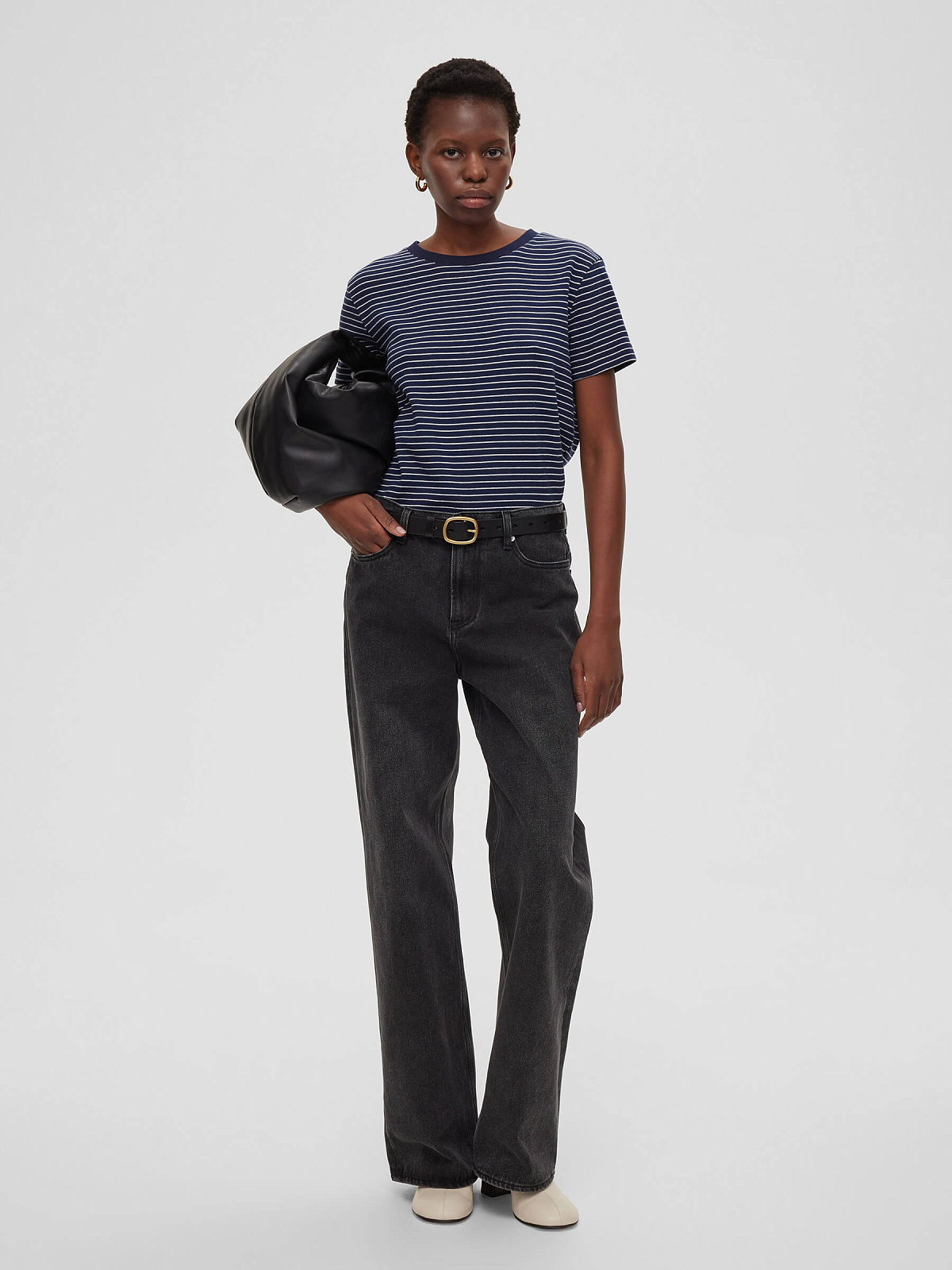 Джинсы свободного кроя - базовая вещь в любом гардеробе. Модель оснащена пятью карманами для удобства и функциональности, а застежка на молнию и пуговицу обеспечивает надежную посадку. Брендированная фурнитура добавляет изысканный акцент, подчеркивая качество изделия.