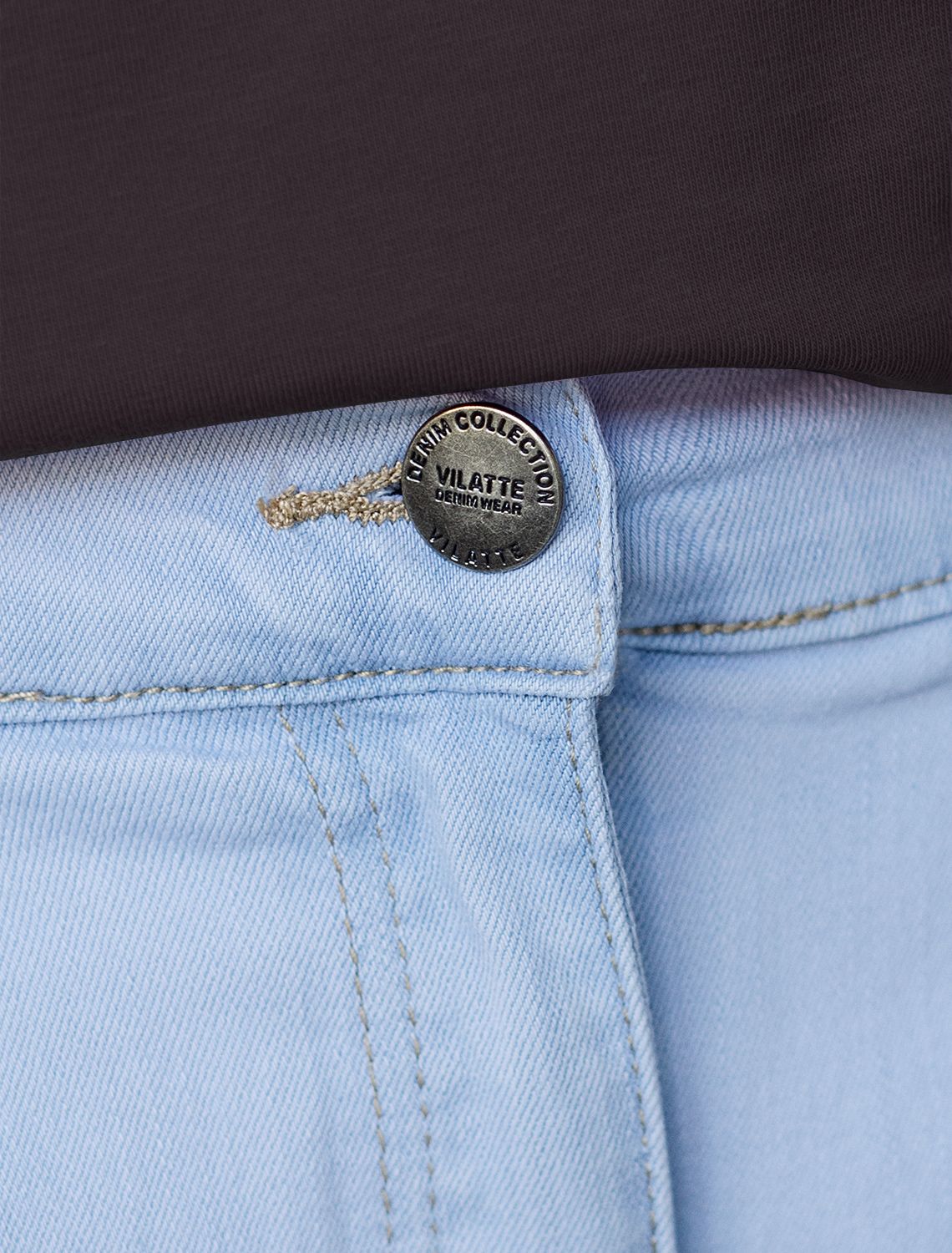 Джинсы выполнены из эластичного денима. Модель свободного кроя с карманами как у классических брюк дополнена эластичной резинкой на поясе сзади. Этот удобный элемент позволяет комфортно фиксировать изделие. При желании можно вставить ремень, в изделии предусмотрены петли по периметру пояса.