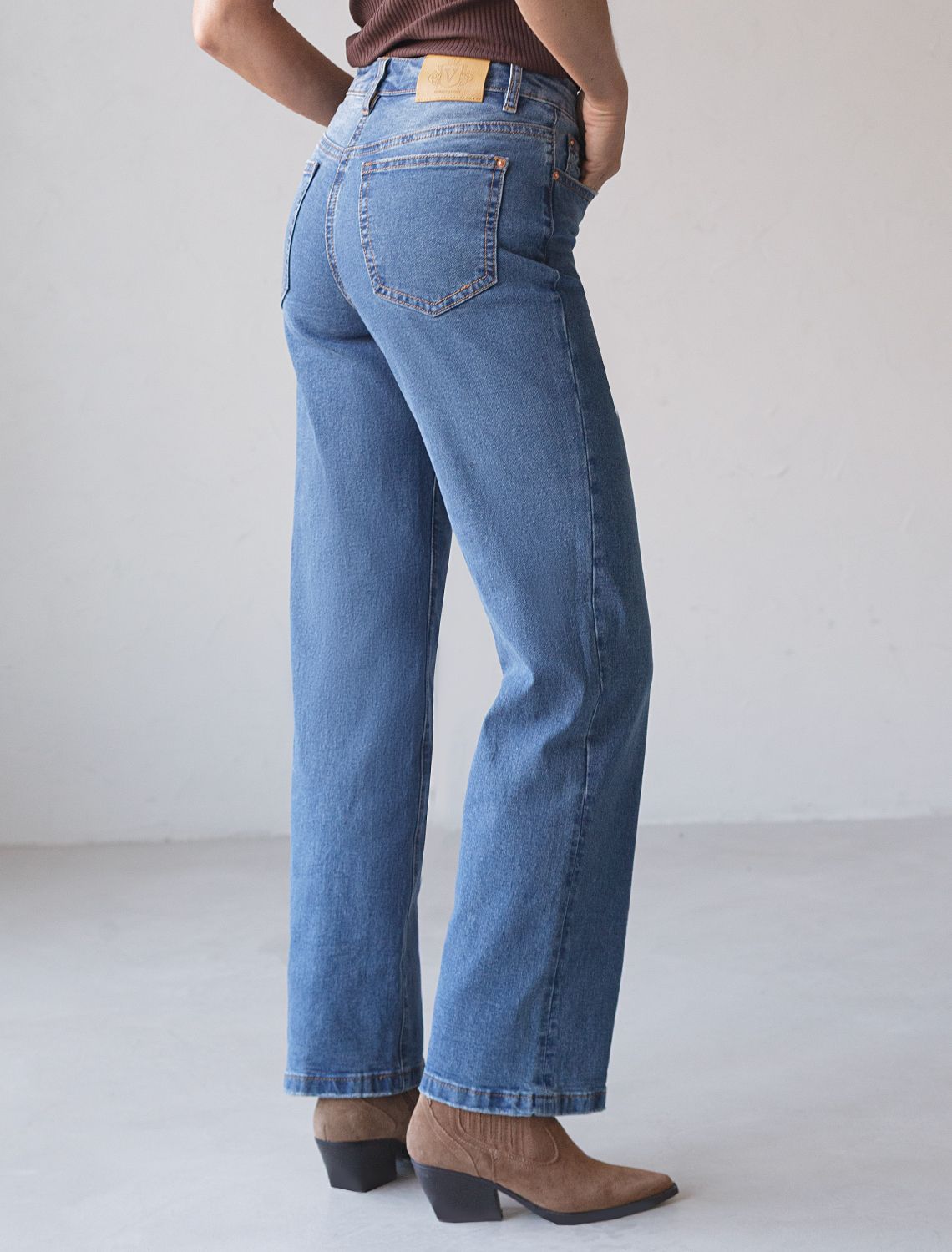 Прямые джинсы синего цвета классического прямого кроя созданы для комфортной носки в осенний и демисезонный период. Модель выполнена из плотного, но мягкого денима с эффектной декоративной стиркой, прямой лаконичный фасон джинс визуально стройнит и вытягивает фигуру. Высокая посадка и правильный крой обеспечивают удобство и поддерживают женственный аккуратный силуэт без лишнего объема. Особое внимание уделено качественной фурнитуре медного цвета, а карманы и кокетка расположены на правильном уровне, что подчеркивает достоинства фигуры и скорректировать. Эластичный материал делает посадку максимально комфортной на маленькие и на большие размеры. Повседневные джинсы подходят на девушек и женщин низкого или высокого роста, прдставлена различная ростовка.
