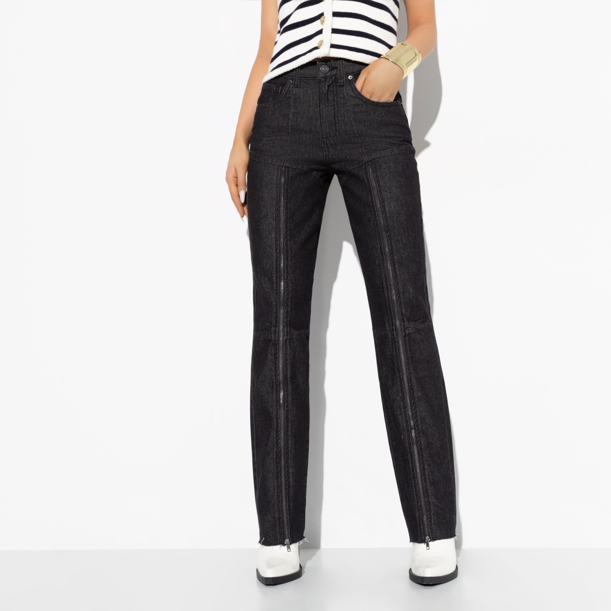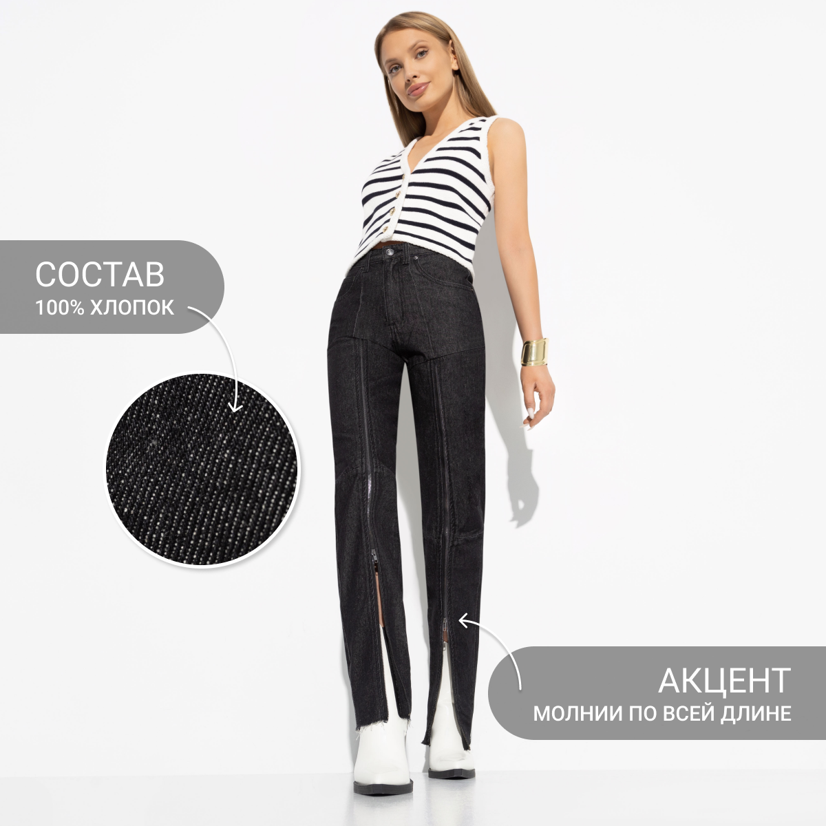 Эти джинсы не просто предмет гардероба — это символ вашего стиля. Их тщательно продуманные детали и высококачественные материалы создают впечатляющий образ, который привлекает восхищенные взгляды. Используйте их для создания разнообразных образов — от повседневного до вечернего — и ощутите уверенность, которую приносит стиль и элегантность.