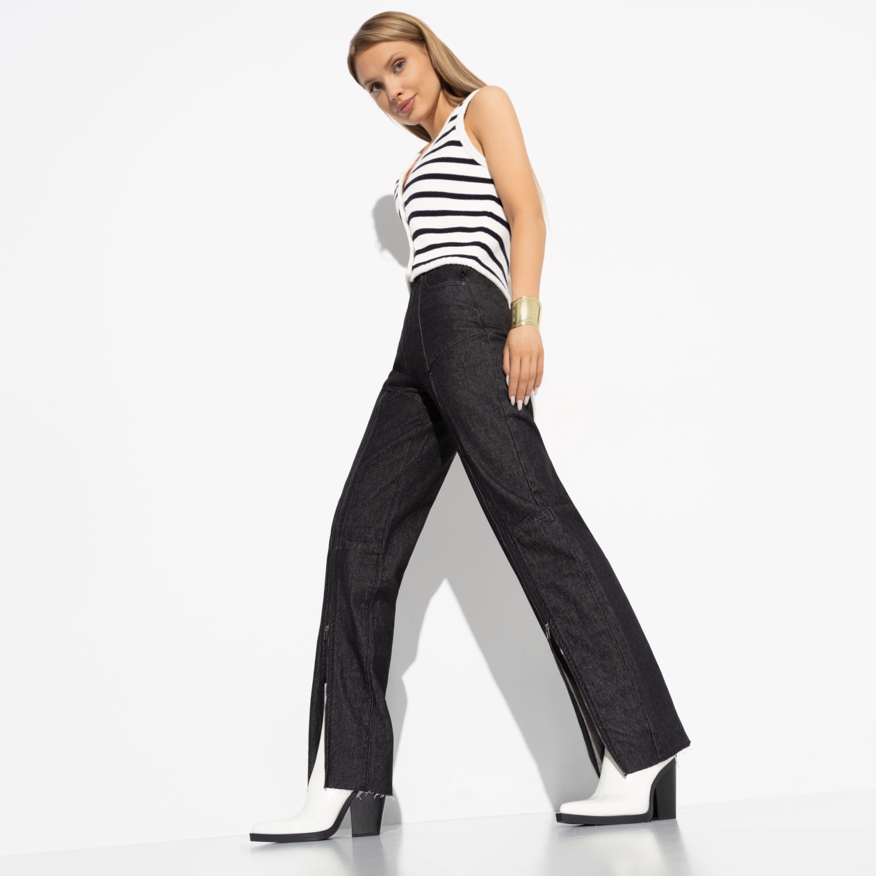 СТ. ЦЕНА 2990 руб//Джинсы с молнией по всей штанине, Bergamo (dark grey)