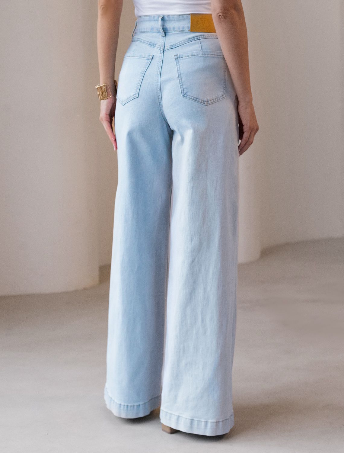 Джинсы-трубы выполнены из эластичного тонкого денима. Модель в голубом оттенке с легкой стиркой свободного кроя с посадкой на талии визуально вытягивает ноги и удлиняет силуэт. Хорошо подойдут для расслабленных повседневных, уличных и офисных образов. Сочетаются с любым верхом от повседневного до классического.