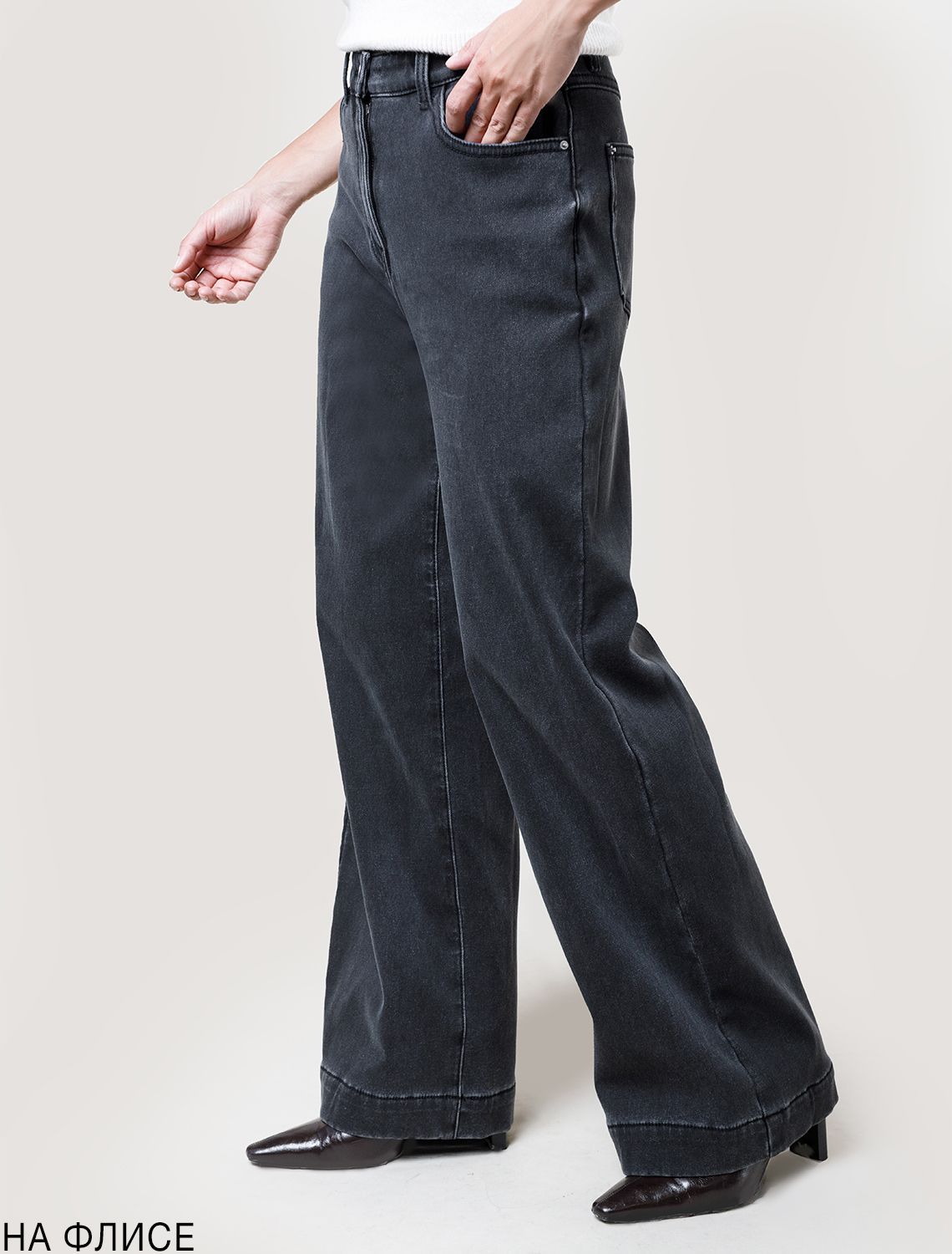 Джинсы-трубы из эластичного денима на флисе