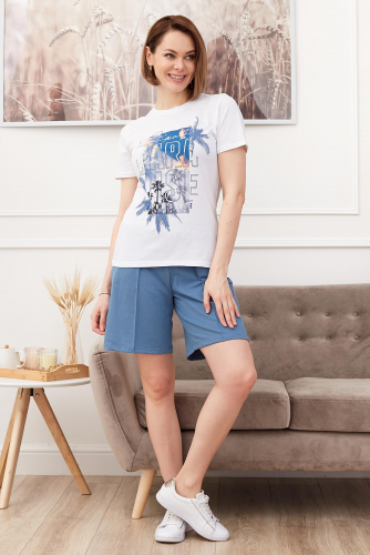 Удобный летний костюм Диана для романтичных девушек. Костюм состоит из футболки свободного кроя и легких шорт. Повседневный вариант для прогулок, дома или отдыха. Костюм выполнен из мягкой велюровой ткани, он не мнется и тактильно приятен на ощупь. Красиво сочетается костюм со спортивной и летней обувью.