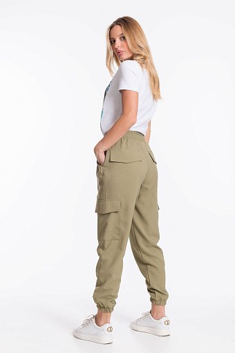 Женские брюки-карго — стильный и практичный элемент гардероба. Они изготовлены из практичного однотонного искусственного льна, который обеспечивает долговечность и износостойкость. Однотонный материал придаёт брюкам лаконичный вид.