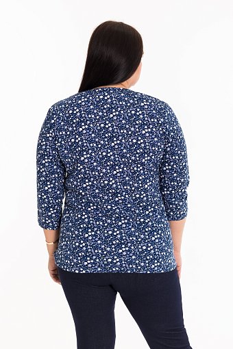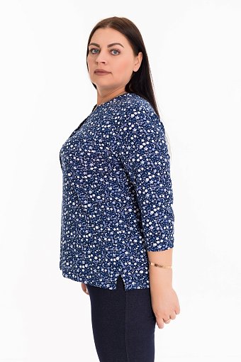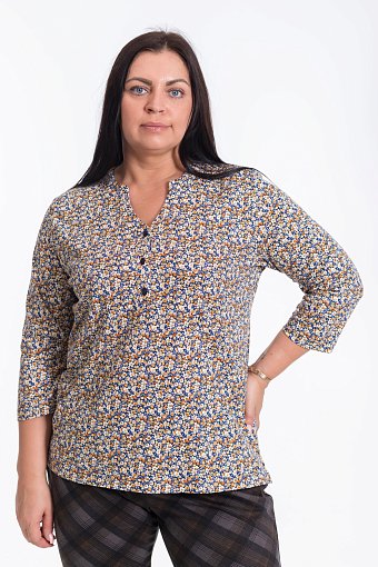 Женская футболка из 100%-ного хлопка с узором — отличный выбор для повседневной носки. Она изготовлена из мягкой и приятной к телу ткани, которая обеспечивает комфорт в течение всего дня. Рукав 3/4 и фигурный вырез горловины придают изделию стильный вид. Футболка застёгивается на три пуговицы, а разрезы в боковых швах добавляют ей оригинальности. Эта футболка подойдёт для прогулок, неформальных встреч или отдыха. Её можно сочетать с различными элементами гардероба.