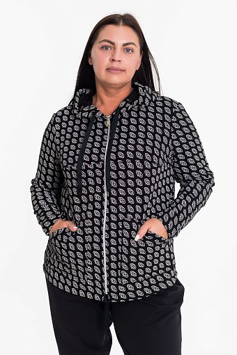 Женская толстовка из футерного полотна — отличный выбор для повседневной носки. Толстовка имеет удобный капюшон и центральную застёжку на молнию. Ширина капюшона и низ толстовки регулируются при помощи шнура. В накладные карманы удобно поместить необходимые мелочи.