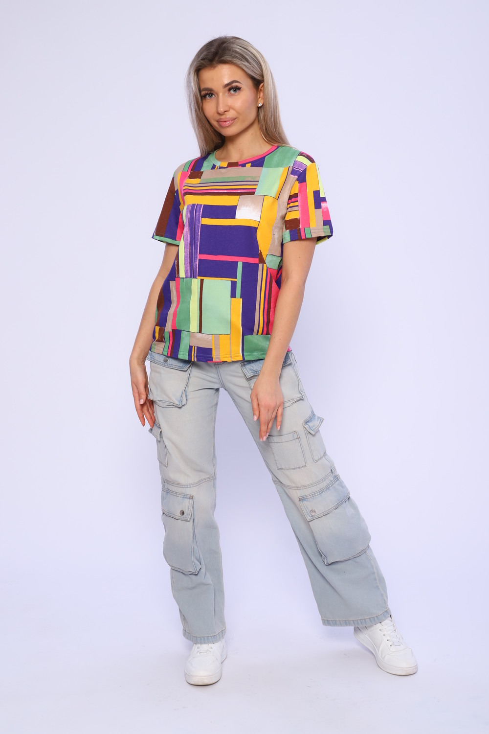 Футболка классического фасона, прямого кроя, с коротким рукавом и округлым вырезом. Универсальная модель футболки отлично подойдет для любого образа и станет необходимой вещью в вашем гардеробе. обращаем ваше внимание, что модель чуть свободного покроя и указанные размеры подходят и для девушек на размер больше, например размер 42 подходит девушка 42 и 44.