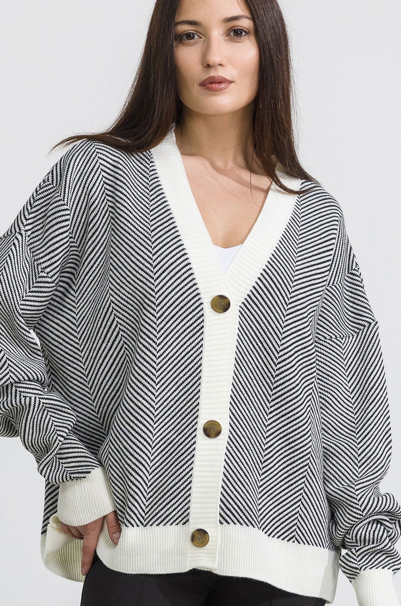 Черно-белый кардиган оверсайз подойдет для любого случая! Свободный силуэт позволяет дополнительно надеть что-то под кофту единого размера onesize.