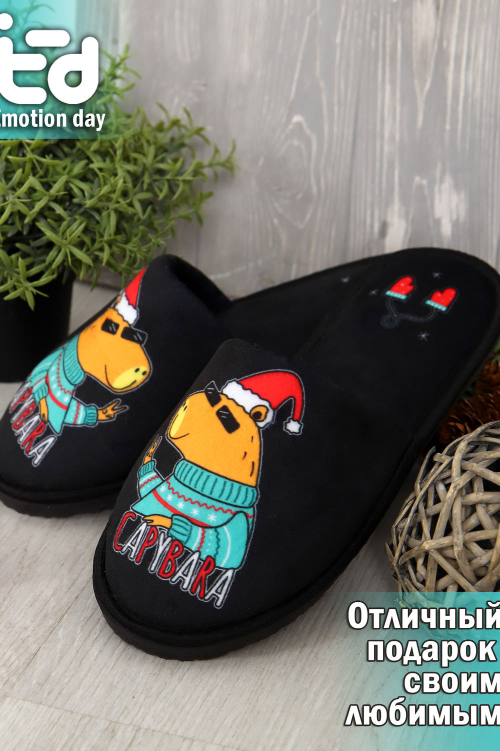 Мягкие домашние тапочки с закрытым носом и открытой пяткой это идеальный аксессуар для создания уютной атмосферы в вашем доме! Верх и стелька изготовлены из теплых и приятных на ощупь материалов. Подошва изготовленная из высококачественного ПВХ, который еще называют EVA. Обеспечивает отличное сцепление с полом и защиту от скольжения. Это уникальный материал и при всей своей комфортабельности, долго способен выдерживать большие нагрузки Удобные и стильные, эти тапочки с рисунком станут незаменимым аксессуаром вашего домашнего гардероба как зимой, так и в летние дни! Все наши тапки прошиваются для большей износостойкости армированной нитью, а сублимационная печать позволяет наносить краску на волокна ткани, из-за чего цвета получаются насыщенными и сохраняют яркость даже после нескольких стирок. Дизайнерские принты придадут уникальности и поднимут настроение вам и вашим гостям!