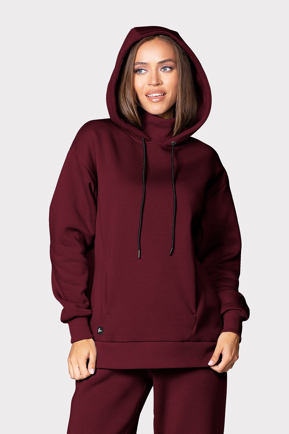 Худи свободного кроя, немного удлиненно, со спущенной линией плеча. Объемный капюшон со шнурами в дуэте с высоким воротом - идеальный вариант против ветра, холода и непогоды. Декорировано оригинальными боковыми швами с функциональными карманами. Манжет и низ изделия выполнены из качественного эластичного материала в рубчик.
