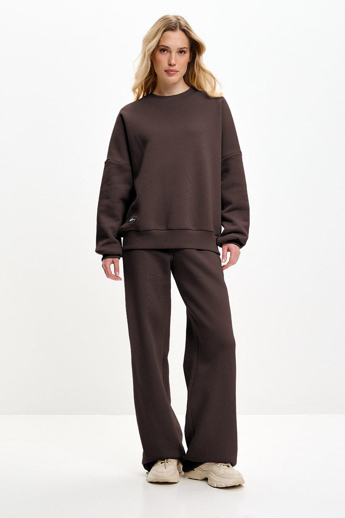 Свитшот оверсайз, со спущенной линией плеча. Горловина, манжеты и низ изделия выполнены из качественного эластичного материала в рубчик.