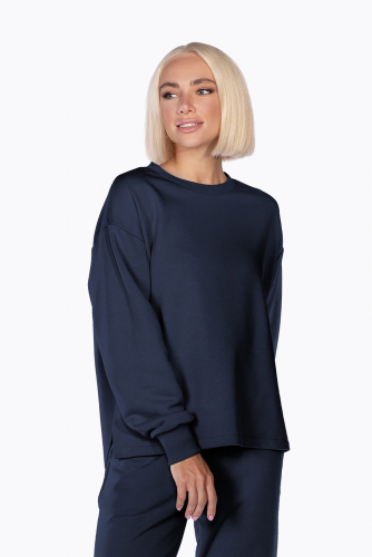 Свитшот с отложным воротничком на утонченной металлической молнии. Манжет и низ изделия выполнен из качественного эластичного материала в рубчик. Универсальный свитшот с длинным рукавом, который уместно будет смотреться и в офисе и на прогулке. Застегнутый под горло или элегантно расстегнут наполовину - можно носить по-разному.