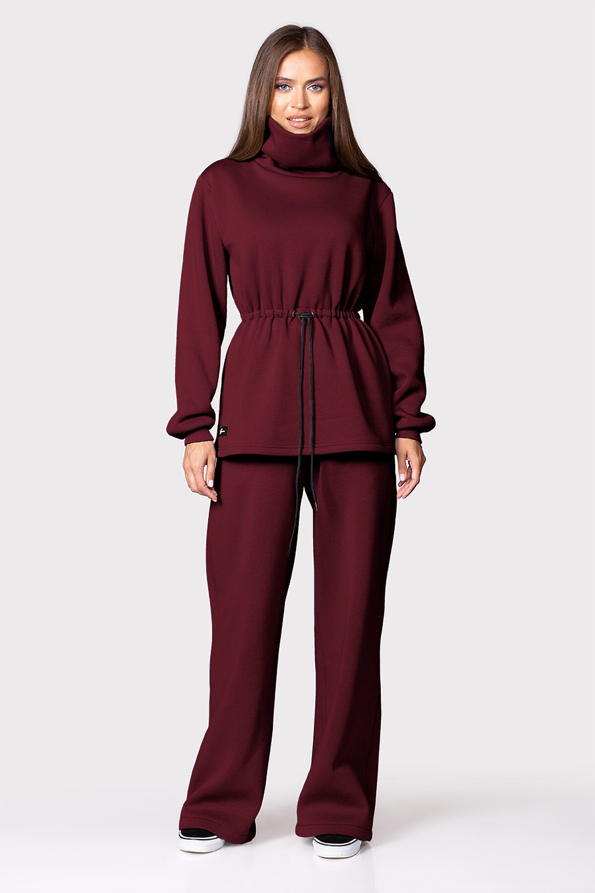 Удлиненный свитшот с объемным воротом и длинным рукавом на манжете. Приталивается и подчеркивает талию засчет кулиски на текстильных завязках с утяжкой. Декорирован именным шевроном с логотипом Ezanna.
