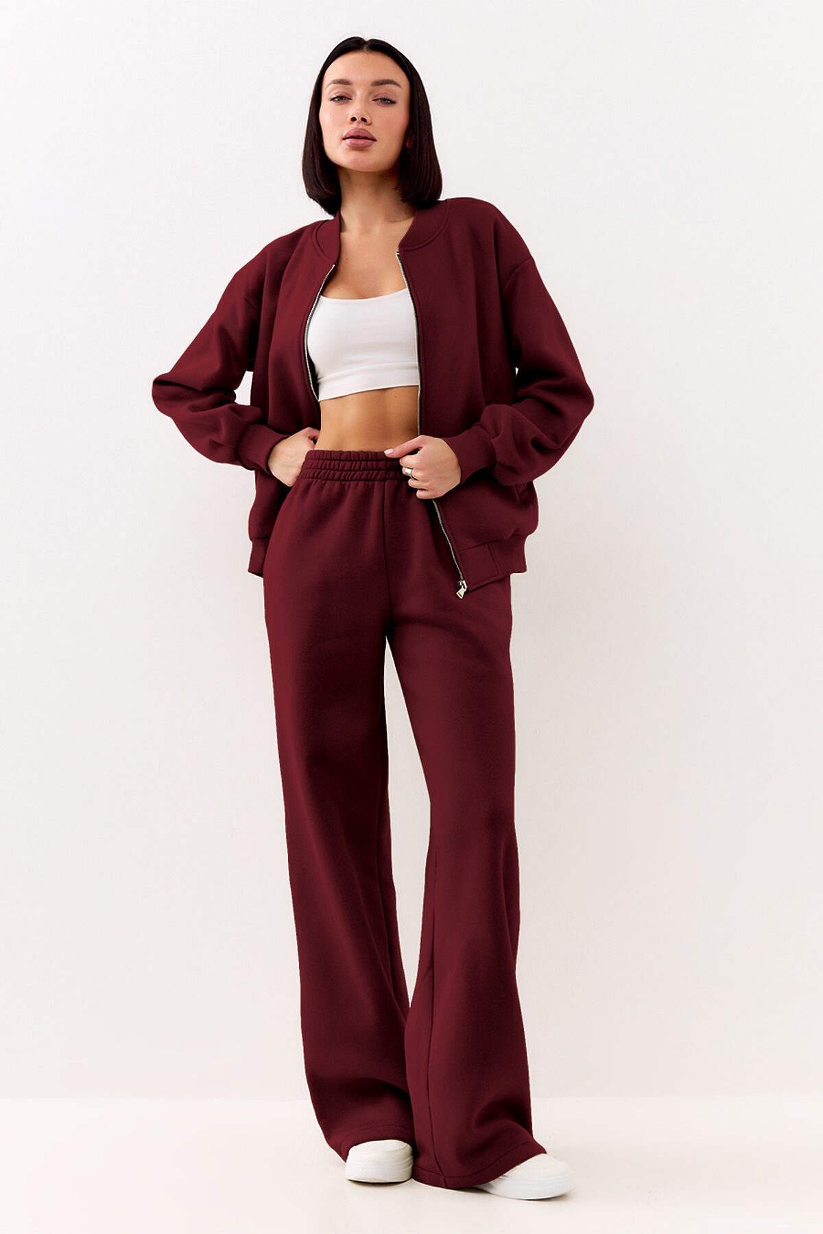 одель свободного кроя, с втачным рукавом и округлым вырезом горловины. Бомбер застегивается на металлическую молнию, с удобными боковыми карманами. Низ изделия, манжеты и ворот выполнены из эластичного фактурного материала.