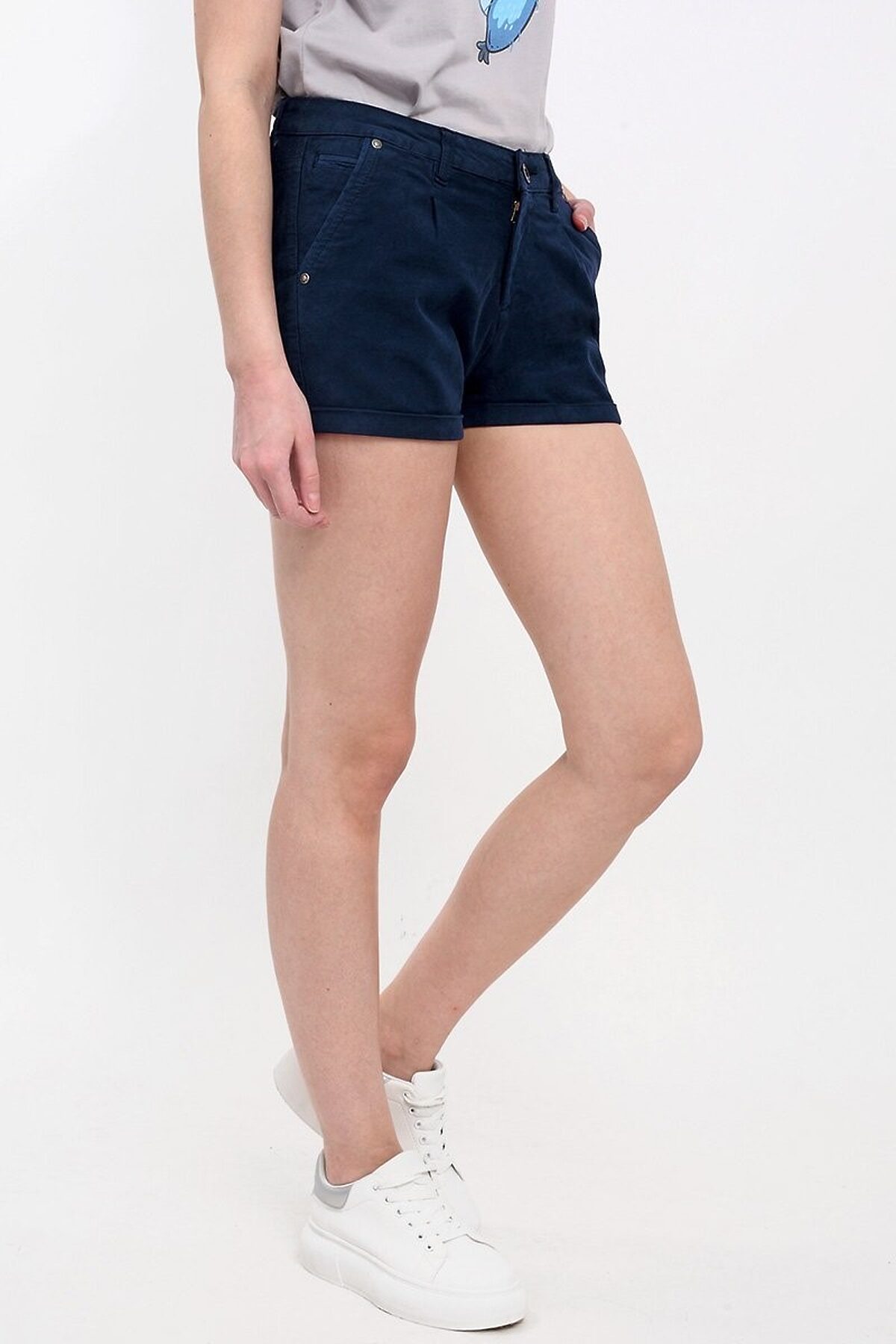 Женские шорты в стиле casual. Посадка Regular fit (полуоблегающие по бедру), широкие, по низу шорт манжеты. Высокая талия. Застежка на молнии. Спреди для свободы движения две скдадки. Сзади ложные карманы "в рамку". Выполнены из отбеленной эластичной мягкой ткани gabardine stretch. Изделие постирано в готовом виде после пошива. Параметры указаны для размера 28. Длина внутреннего шва для размеров 25-29 - 10,0 см., для размеров 30-32 - 11,0 см. 98% Хлопок, 2% Эластан