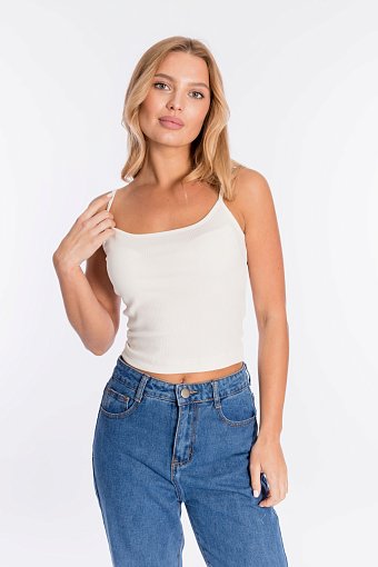 Женский топ на тонких бретелях выполнен из кашкорсе-вискозы.