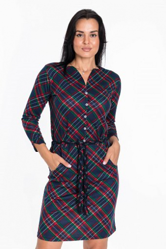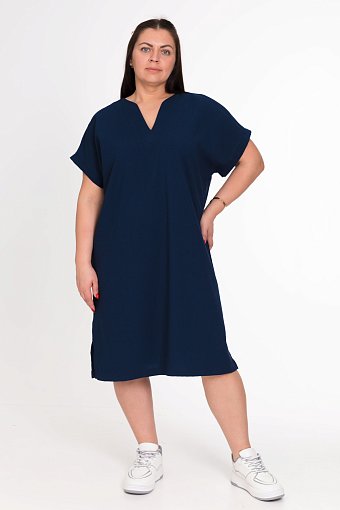 Платье из полотна "искусственный лен" - свободного кроя, V-образный вырез горловины, спущенный рукав на манжете, в боковых швах разрезы.