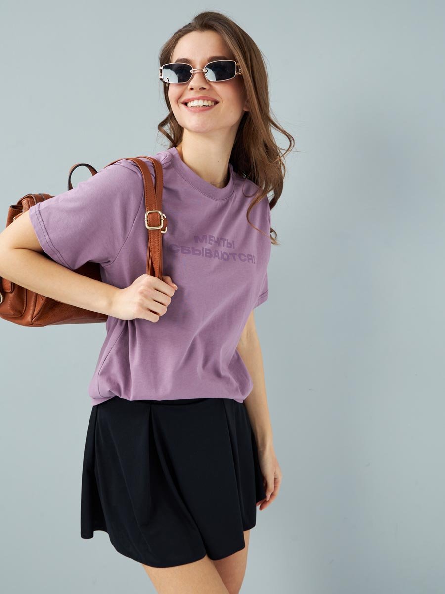 Женская футболка F5, Oversize fit (свободный силуэт), круглый вырез горловины, короткий цельнокроеный рукав. Выполнена из классического трикотажного полотна. 100%Хлопок