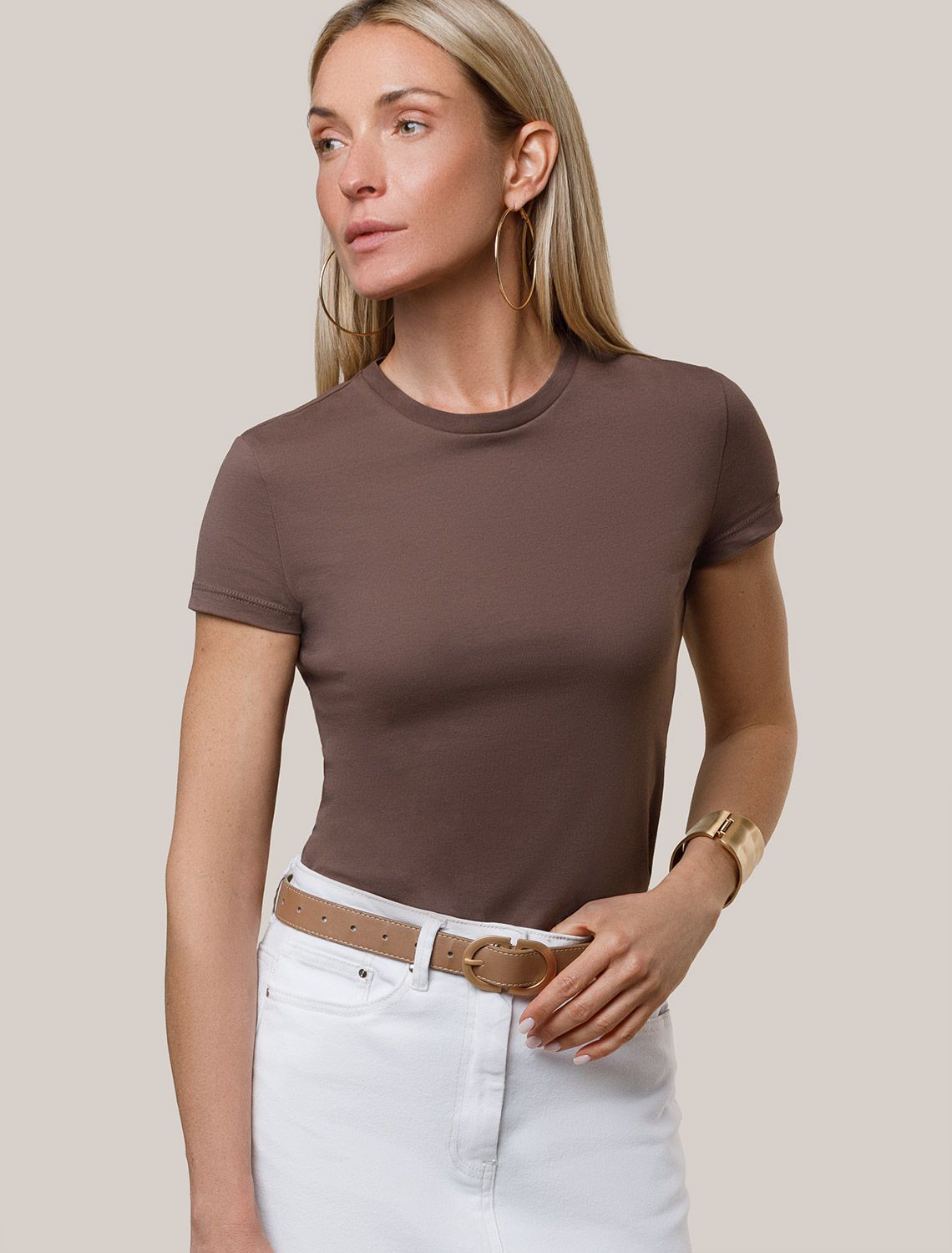 Футболка выполнена из премиального хлопка, дополнена металлическим логотипом бренда на рукаве.Модель идеально сидит по фигуре не сковывая движения. Хлопковый трикотаж поддерживает оптимальную температуру тела, поэтому в изделии будет комфортно в течении всего дня. Наличие эластана в составе гарантирует формоустойчивость. Базовая модель впишется в повседневные образы и подойдет для офисного дресс-кода.