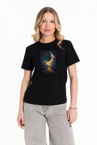 Женская футболка с принтом изготовлена из хлопкового полотна - что обеспечивает комфорт и хорошую воздухопроницаемость. Футболка имеет короткий рукав и круглый вырез горловины, что придает ей классический стильный вид. Такая модель футболки отлично сочетается с джинсами, брюками или юбкой. Изготовленная из натуральной ткани, футболка обеспечит комфорт в течение всего дня.