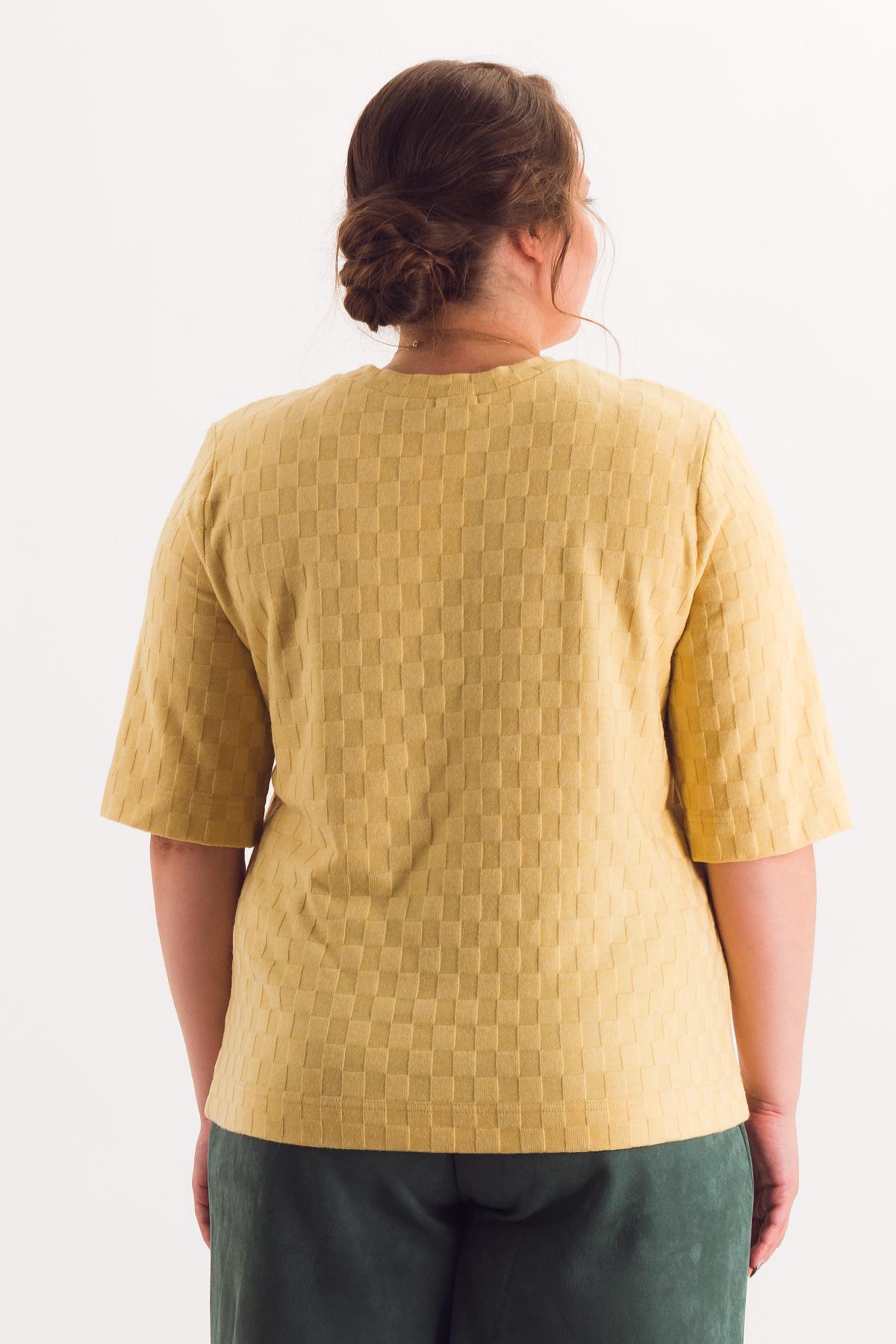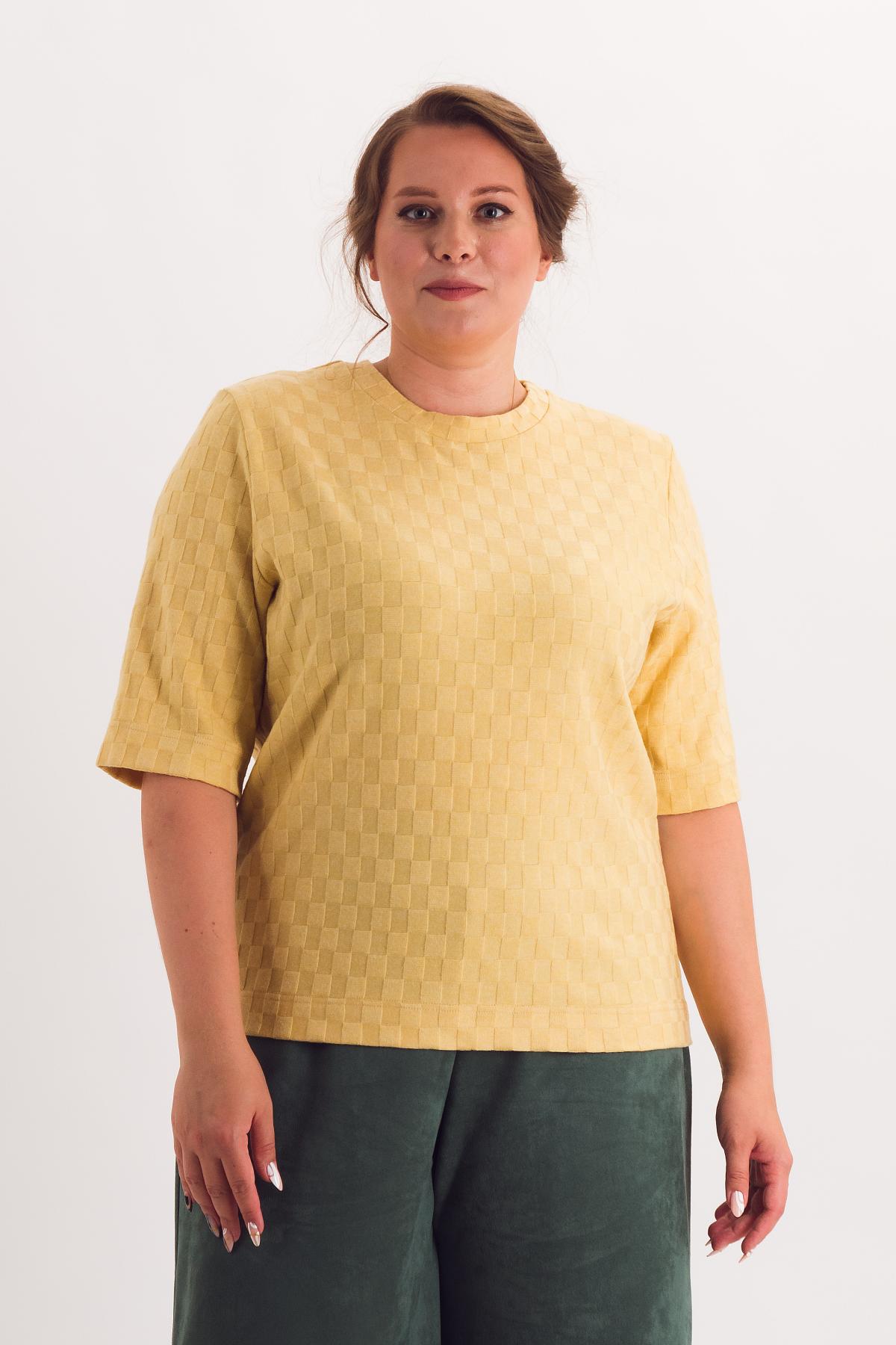 Описание: Молодежная футболка прямого силуэта, с удобными, слегка расширенными к низу рукавами и широкой подгибкой, поможет вам создать интересный и модный образ, в котором вы будете чувствовать себя комфортно.