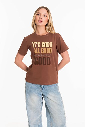 Женская футболка с принтом спереди изготовлена из хлопкового полотна с добавлением лайкры. Футболка с коротким втачным рукавом и круглым вырезом горловины, что придает ей классический стильный вид. Такая модель футболки отлично сочетается с джинсами, брюками или юбкой. Изготовленная из натуральной ткани, футболка обеспечит комфорт в течение всего дня.
