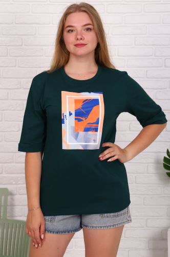 Женская футболка классического кроя со оригинальным "акварельным" размытым принтом.