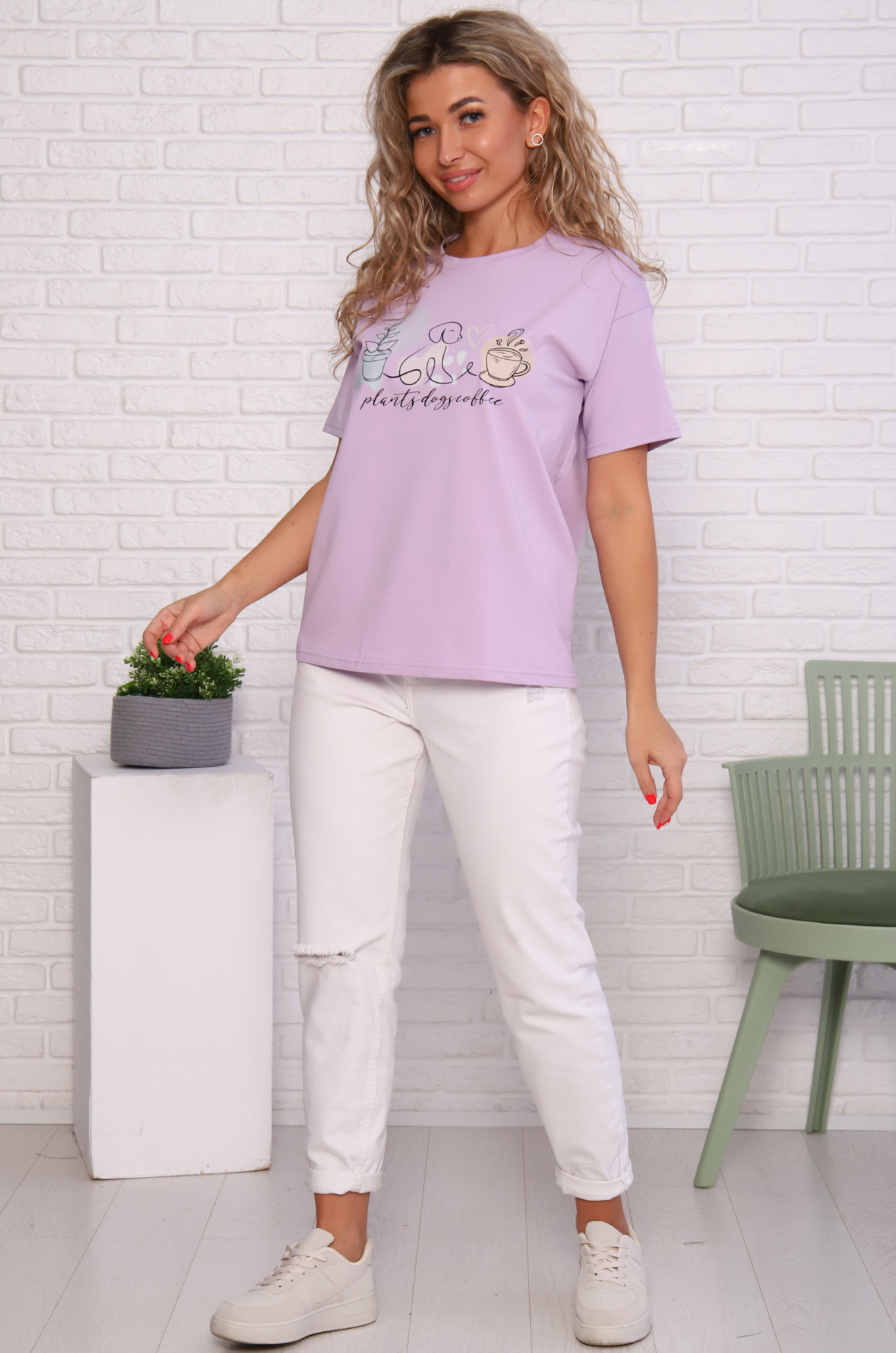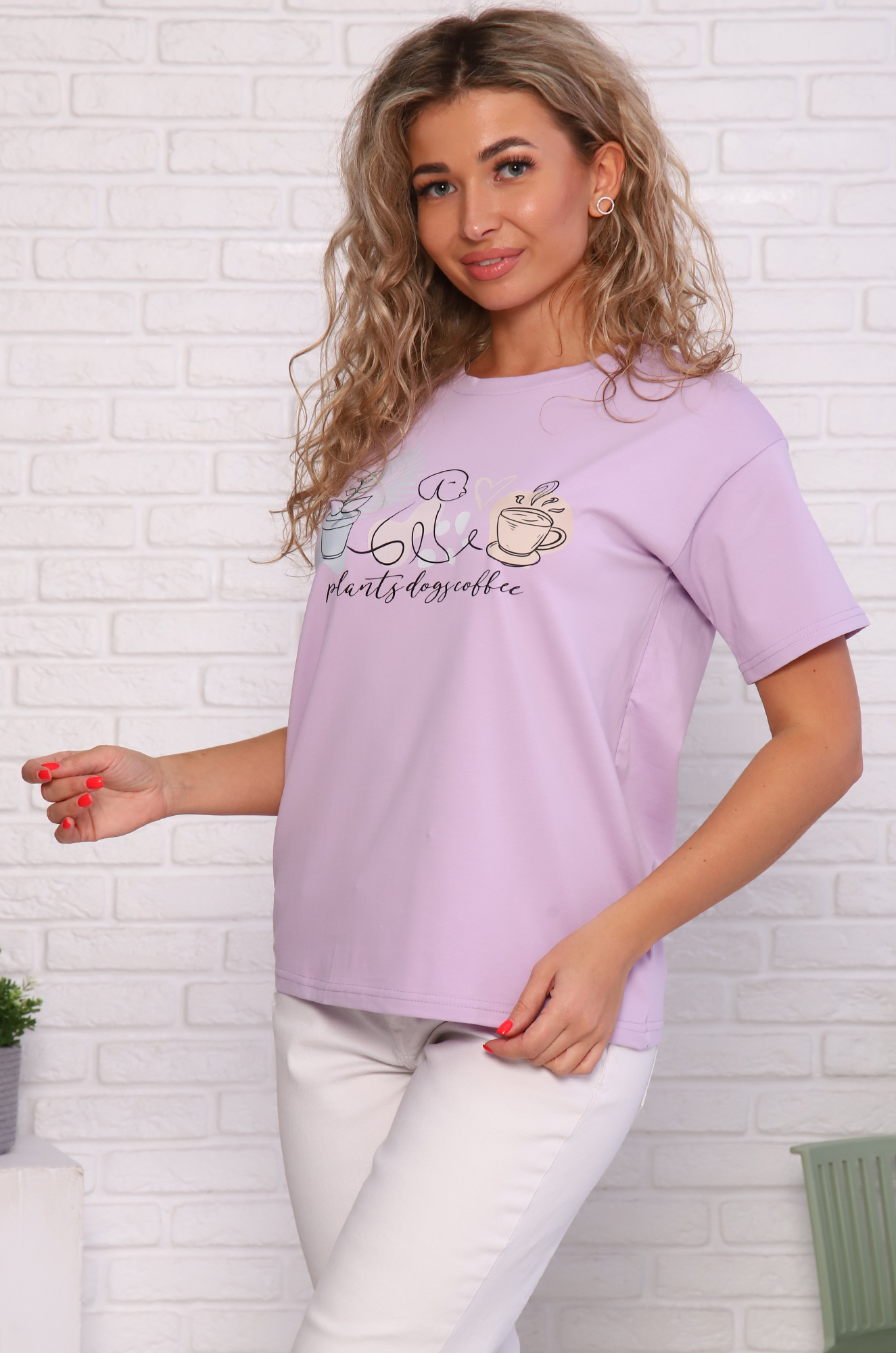 Нежная и очень симпатичная женская футболка с принтом. Модель в классическом крое, рукав втачной.