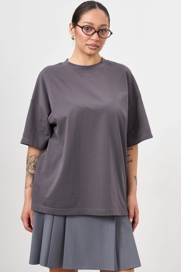 Свободная футболка с ярким весенним принтом. Спущенное плечо, круглая горловина, длина рукава до сгиба локтя.