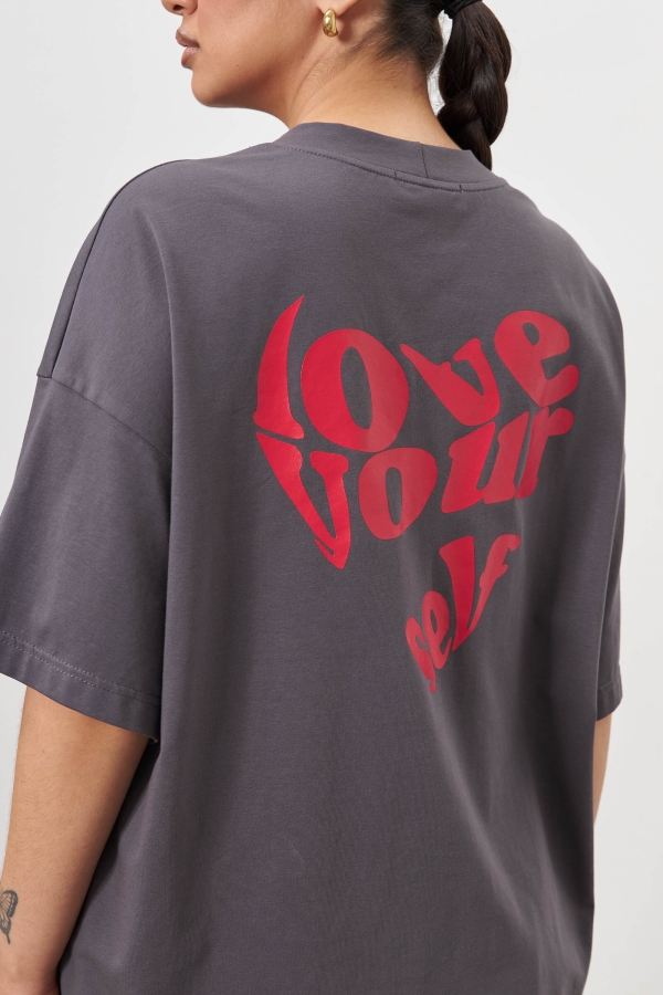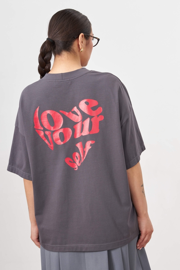 Свободная футболка с ярким весенним принтом. Спущенное плечо, круглая горловина, длина рукава до сгиба локтя.