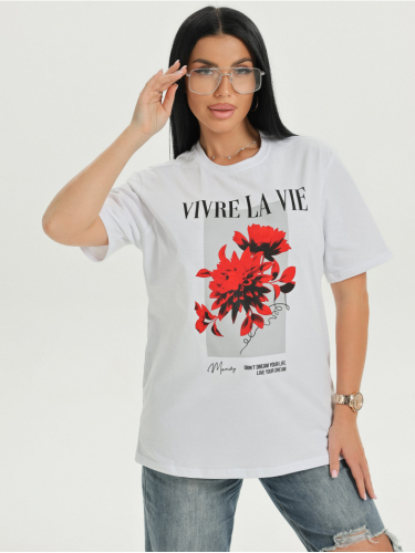 Женская футболка оверсайз с  принтом.  Выполнена из натурального хлопка, качественный материал при бережном уходе не вытягивается и не дает усадку. Принт нанесён современным способом печати - шелкография, он не трескается и не осыпается со временем, коже под ним комфортно. Белый