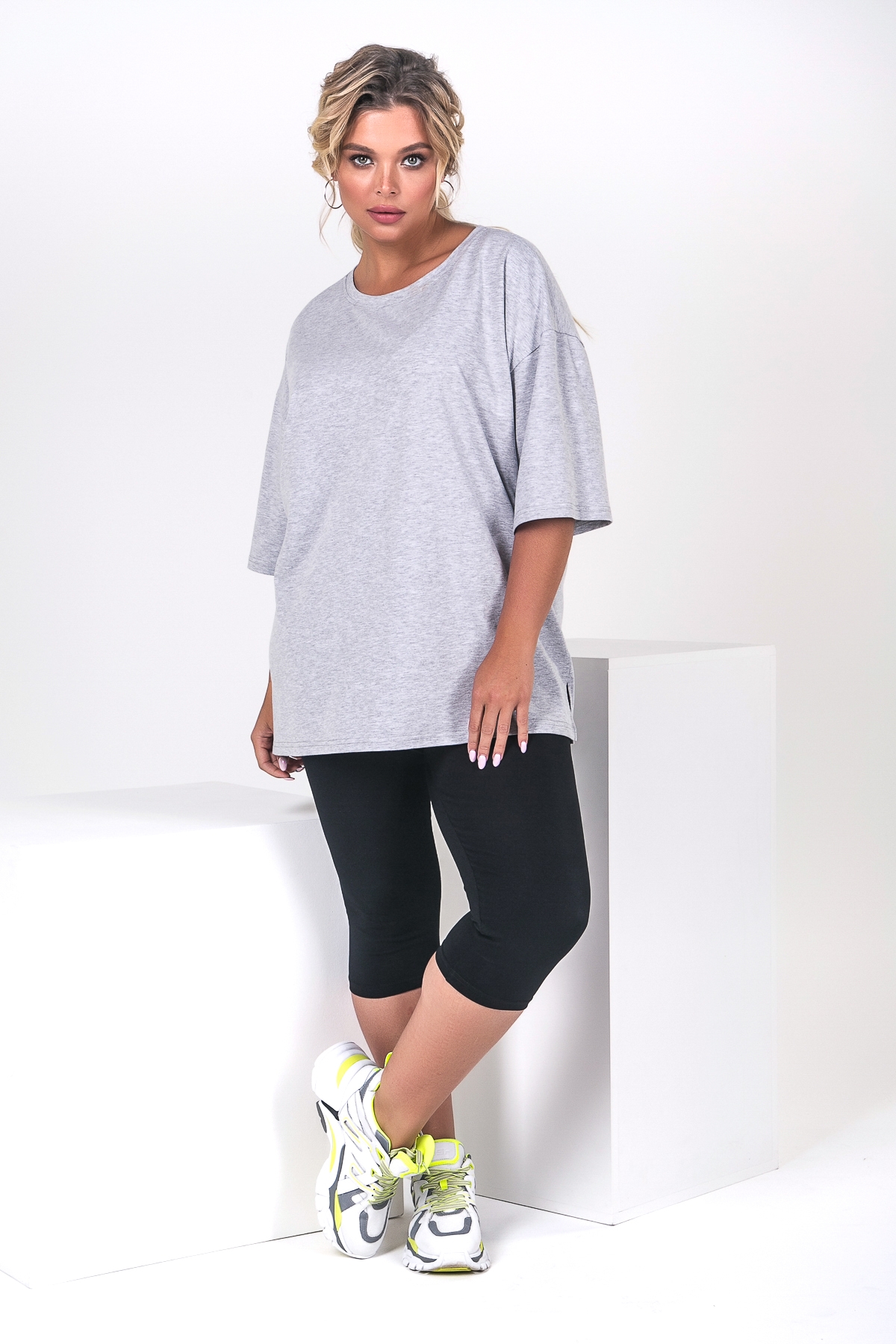 Футболка прямого силуэта из однотонного трикотажного полотна свободного кроя. Круглый вырез горловины. Короткие втачные рукава. Низ ровный, по бокам разрезы. Идеальный вариант на каждый день.