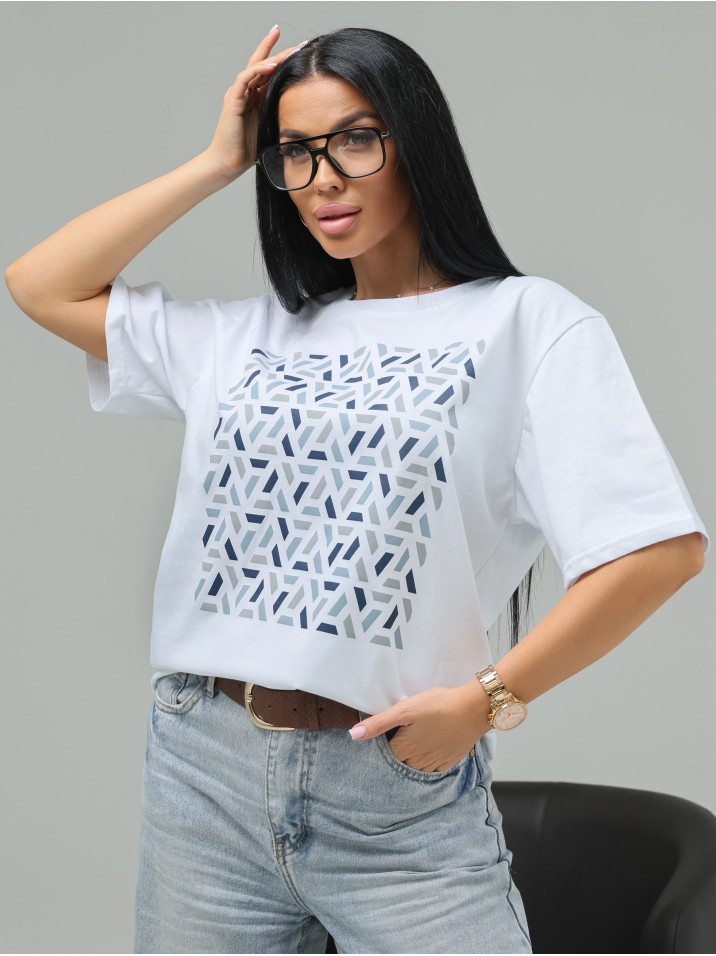 Праздничная женская футболка оверсайз с  принтом.  Выполнена из натурального хлопка, качественный материал при бережном уходе не вытягивается и не дает усадку. Принт нанесён современным способом печати - шелкография, он не трескается и не осыпается со временем, коже под ним комфортно. Кулирка/Хлопок 100%