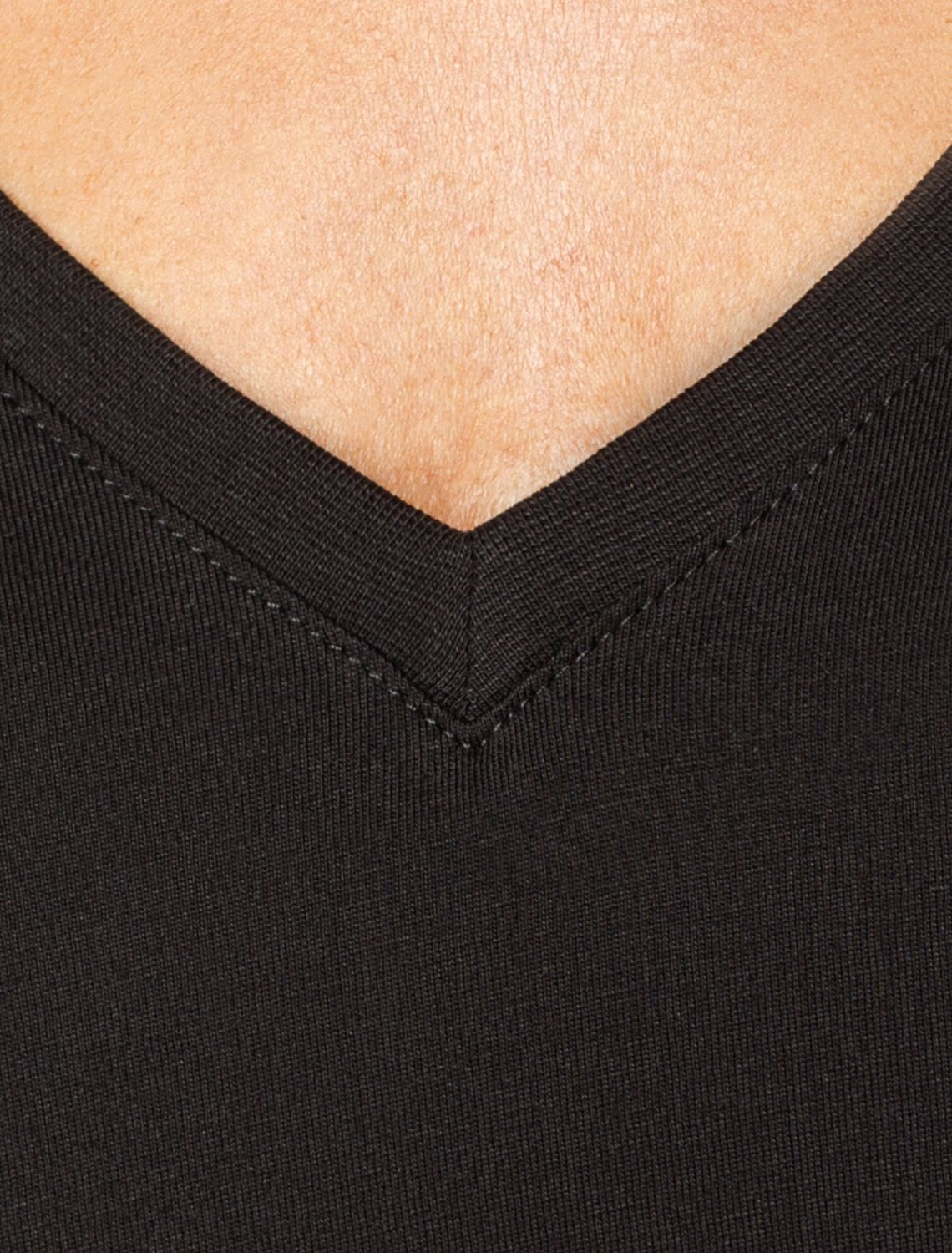 Базовая модель свободного кроя c V-вырезом легко впишется в повседненвый гардероб. Изделие хорошо держит форму и обеспечивает комфортный микроклимат в течение дня.
