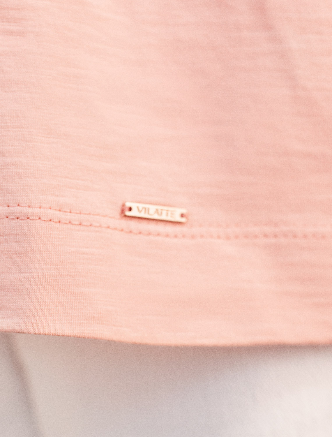 Футболка выполнена из фактурного полотна из 100% хлопка. Модель дополнена открытым срезом на плечах. Как базовая модель отлично впишется в любой гардероб. Ткань имеет характерный рисунок черточки за счет сочетания разных волокон хлопка 140-150 г. Хорошо держит форму и поддерживает комфортный микроклимат в течении дня.