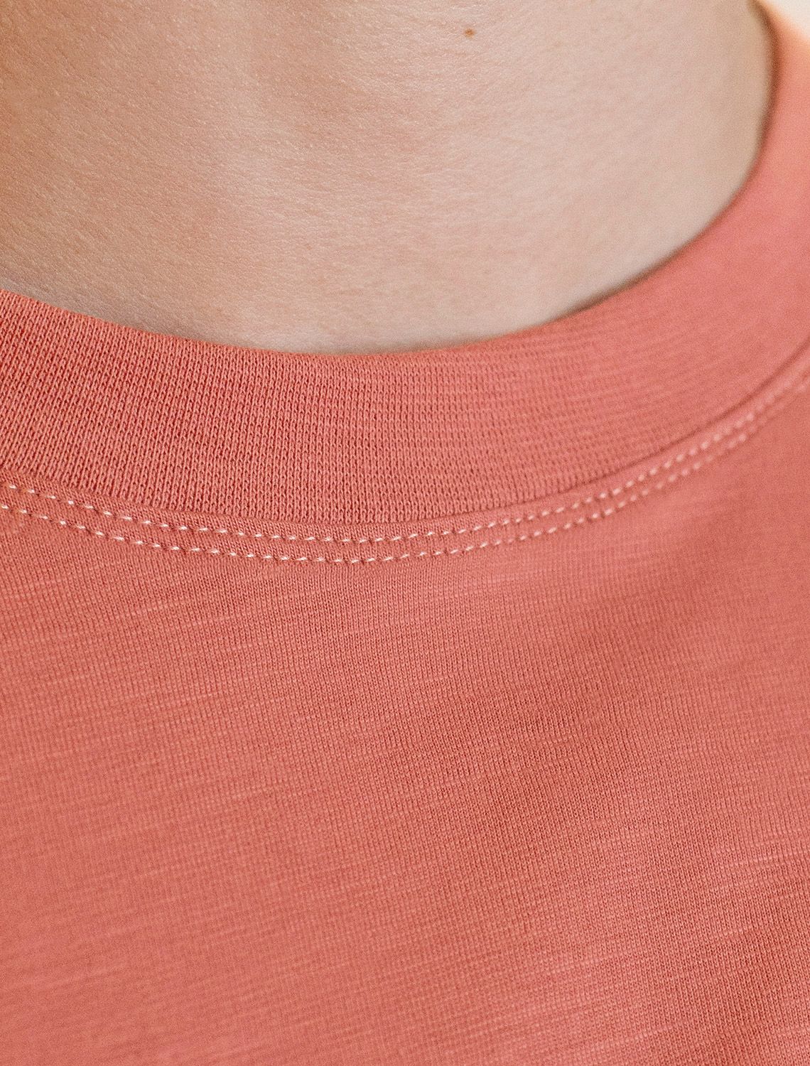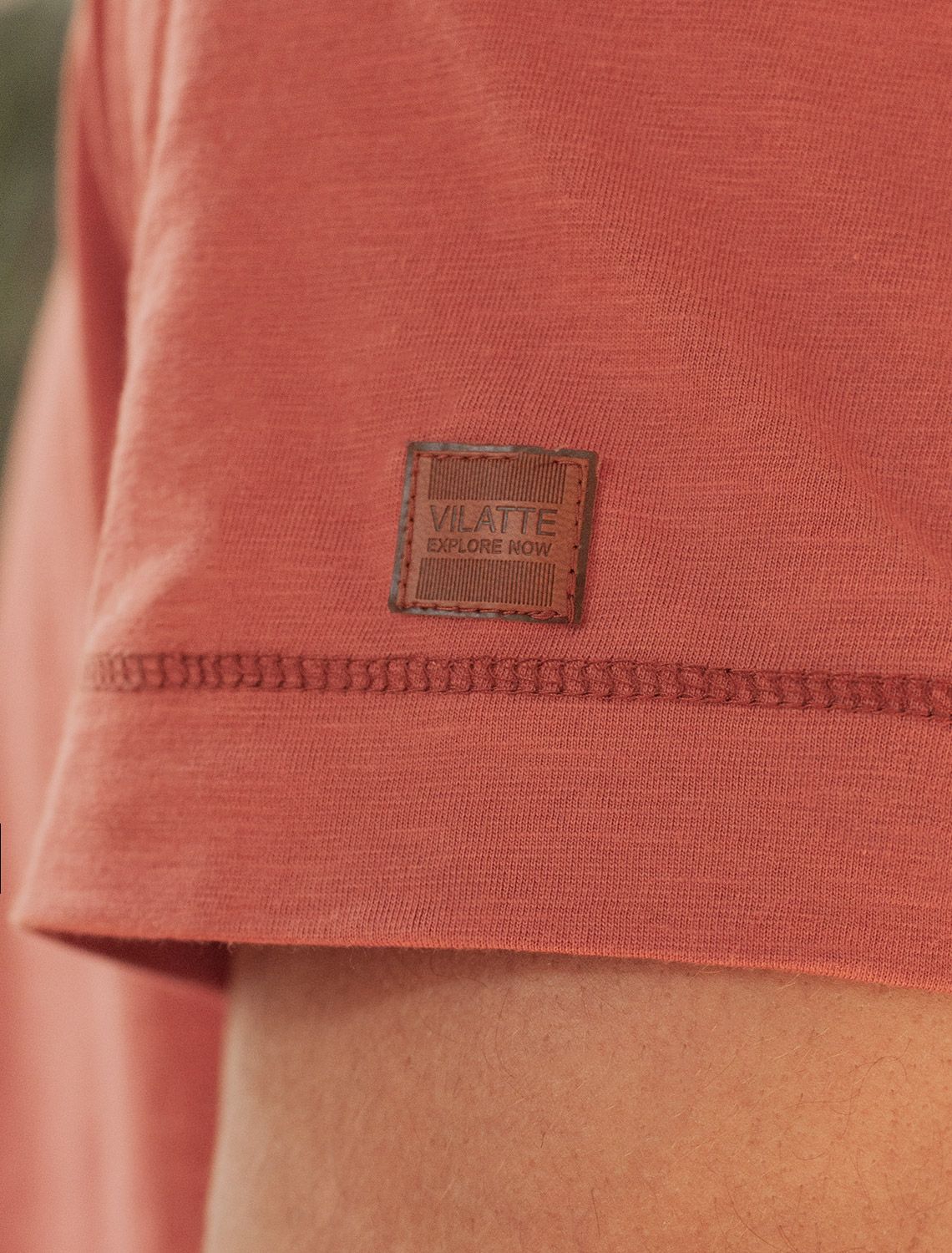 Футболка выполнена из фактурного полотна из 100% хлопка. Базовая однотонная модель, без труда впишется в любой гардероб. Ткань имеет характерный рисунок черточки за счет сочетания разных волокон хлопка 140-150 г. Хорошо держит форму и поддерживает комфортный микроклимат в течении дня. На рукаве нашивка из эко-кожи с логотипом бренда.
