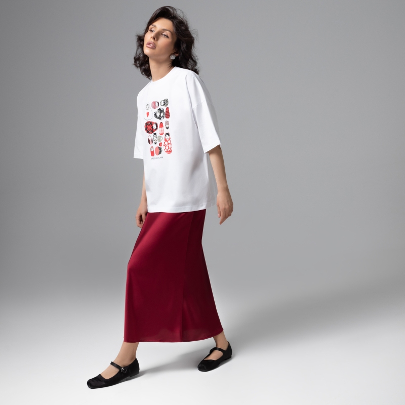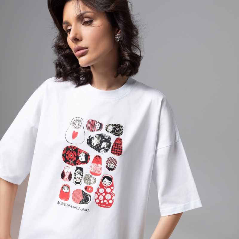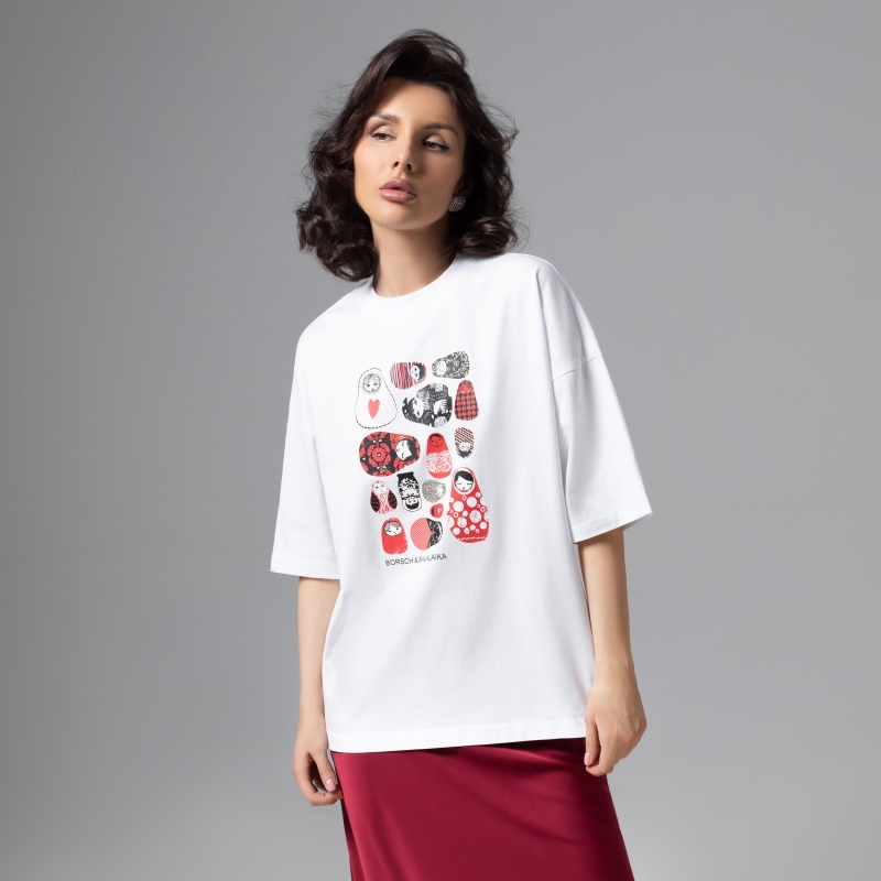 Этно-шик в новом прочтении. Белоснежная футболка свободного силуэта, украшенная тонкой фольклорной графикой. Стиль, вдохновленный наследием. Футболка удлиненная свободного кроя. Линия плеча спущена. Хлопок премиального качества. Принт напечатан.
