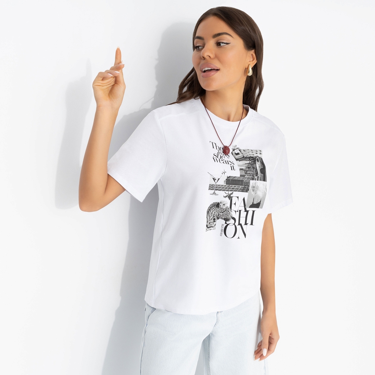 Футболка ЧАРУТТИ – главный экспонат выставки «Успеть всё». Способна выдержать перепады температур и настроений, подстраивается под ширину объятий и незаметно превращает «офисный casual» в «идеально для родительского собрания». Футболка классического прямого кроя. Хорошо смотрится в заправленном виде и навыпуск.