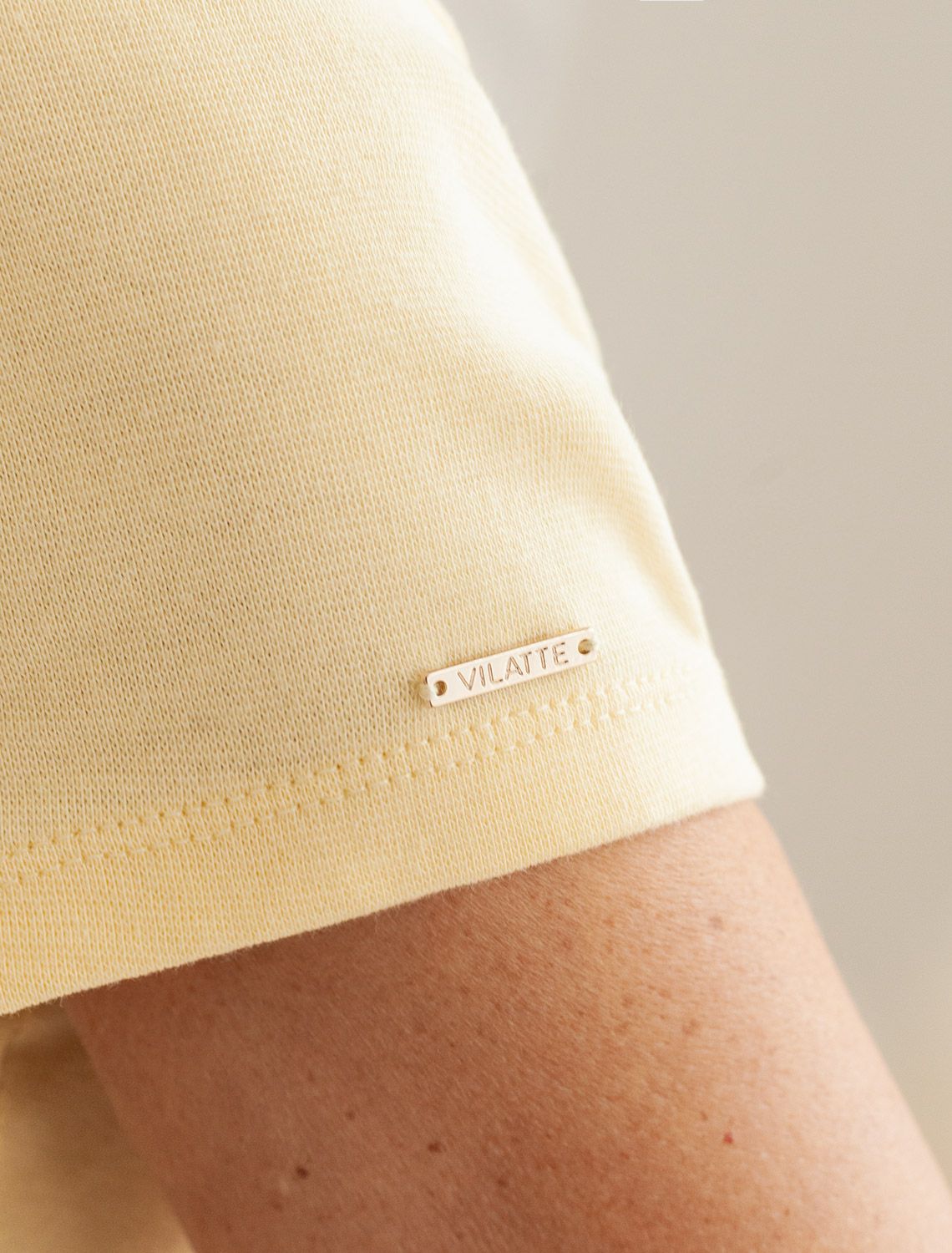 Облегающая футболка с V-образным вырезом бананового цвета создаст утонченный образ. Идеальная базовая модель для вашего гардероба! Глубокий V-образный вырез подчеркивает линию шеи и зрительно удлиняет силуэт. Футболка выполнена из хлопка с добавлением эластана, которая мягко облегает контуры тела, подчеркивая достоинства фигуры. Универсальный вариант для создания стильных повседневных образов.