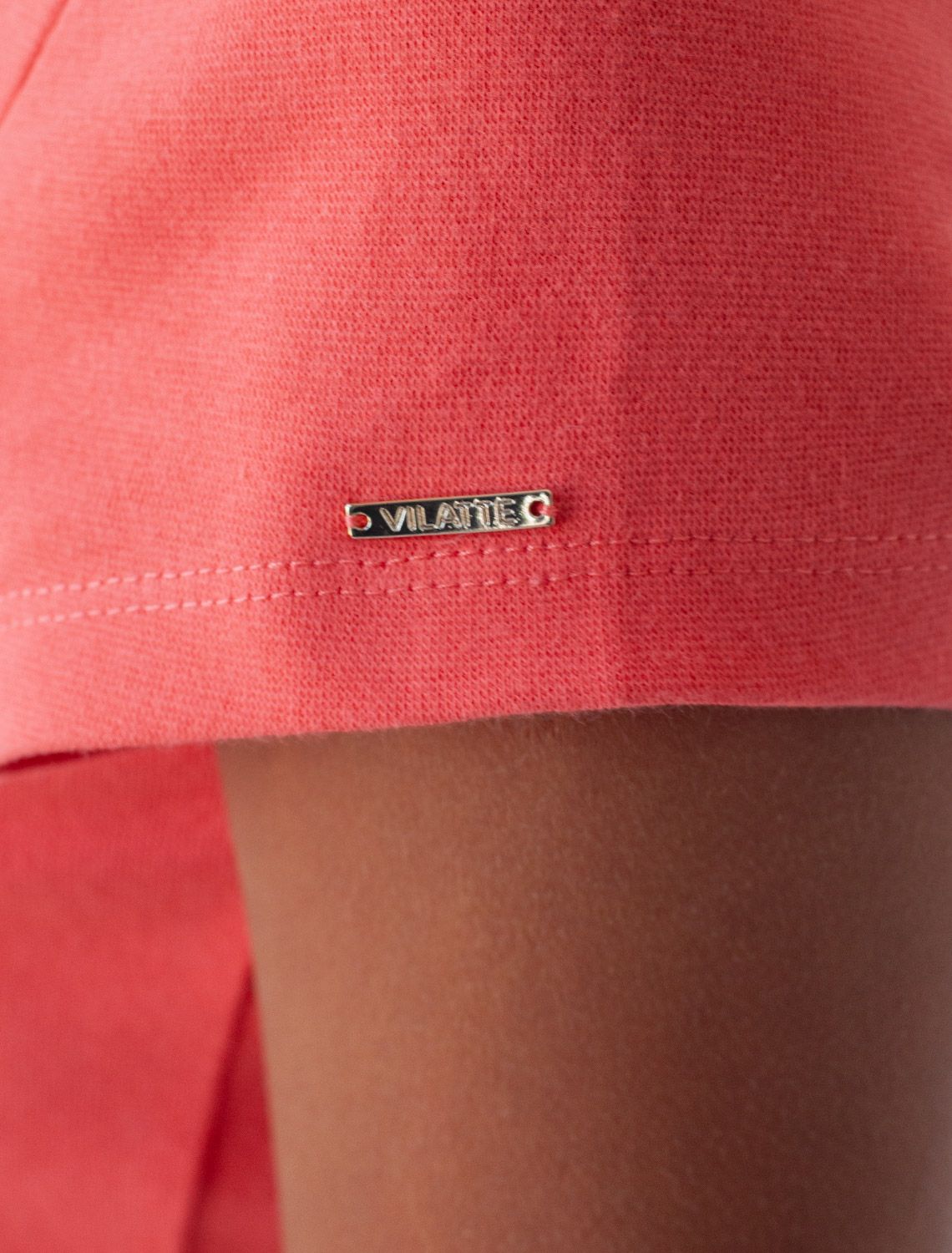 Облегающая футболка с V-образным вырезом в цвете "розовый коралл" создаст утонченный образ. Идеальная базовая модель для вашего гардероба! Глубокий V-образный вырез подчеркивает линию шеи и зрительно удлиняет силуэт. Футболка выполнена из хлопка с добавлением эластана, которая мягко облегает контуры тела, подчеркивая достоинства фигуры. Универсальный вариант для создания стильных повседневных образов.