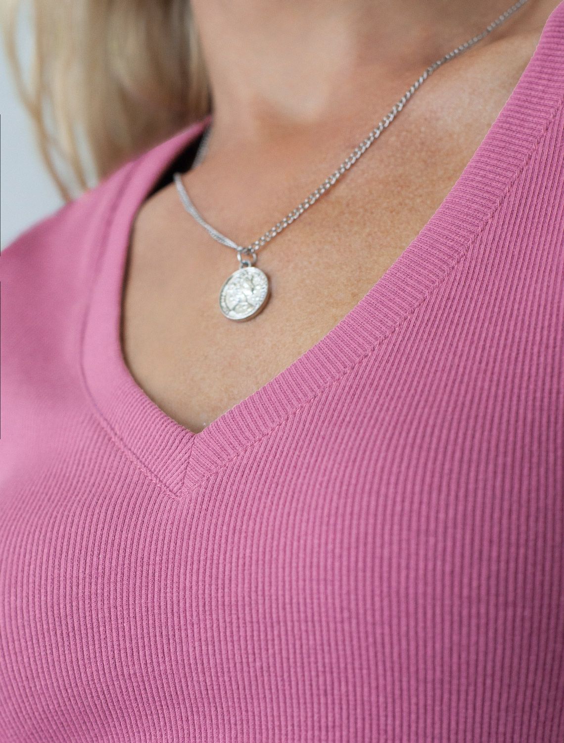 Стильная облегающая футболка грязно-розового цвета с V-образным вырезом сшита из плотного хлопкового трикотажа в рубчик с добавлением эластана, что гарантирует комфортную посадку по фигуре. V-вырез подчеркивает линию декольте, добавляя образу нотку элегантности. Практичная модель, которая не деформируется после стирок и сочетается с любым стилем одежды - от кэжуал до смарт-кэжуал.