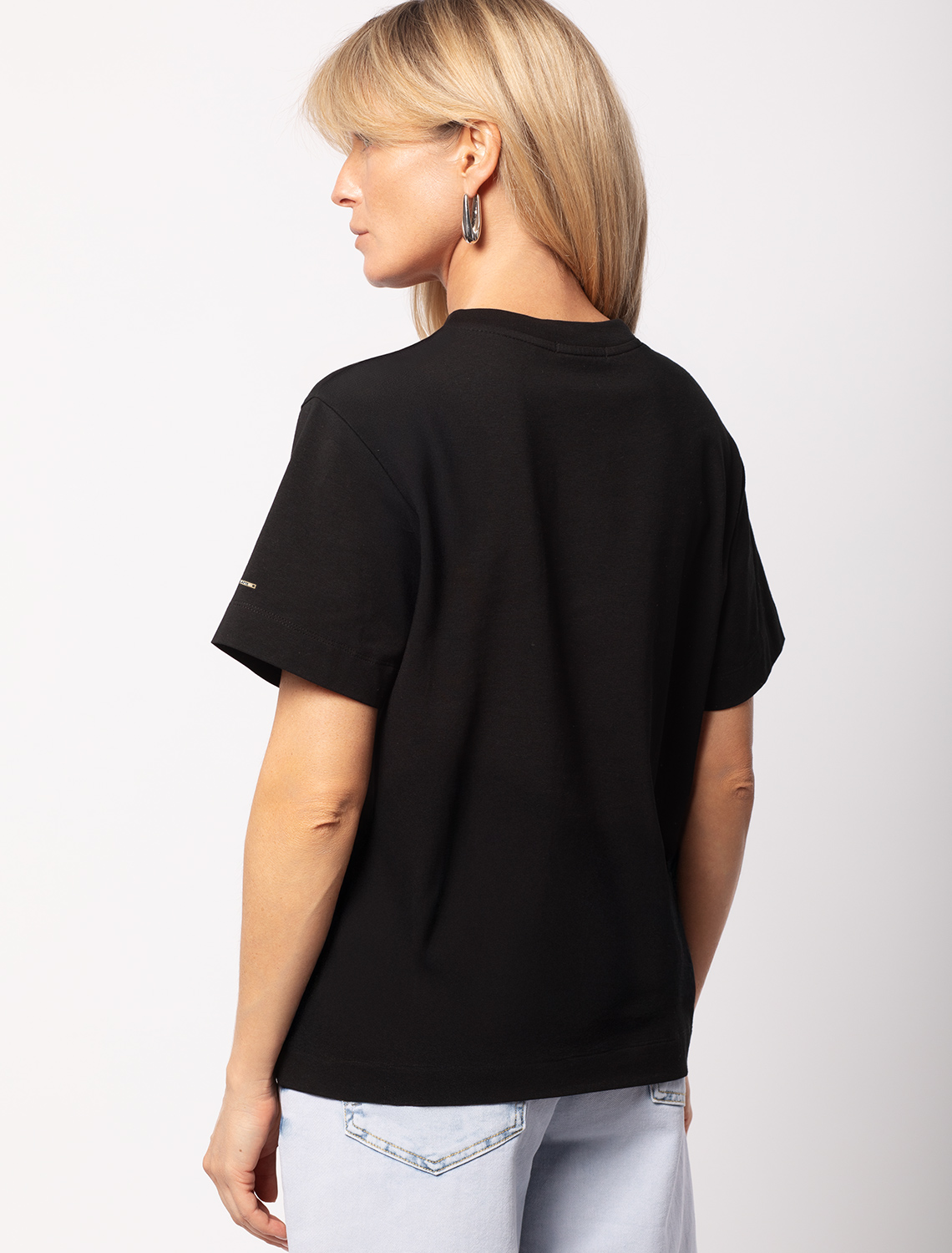 Перевод принта: Attitude makes a big difference - от отношения зависит многое. Футболка выполнена из премиального хлопка. Авторский принт нанесен фактурными красками с устойчивым покрытием. Наличие эластана в составе гарантирует комфорт и формоустойчивость. Изделие дополнено фирменным металлическим логотипом бренда. 92%Хлопок 8%ПУ
