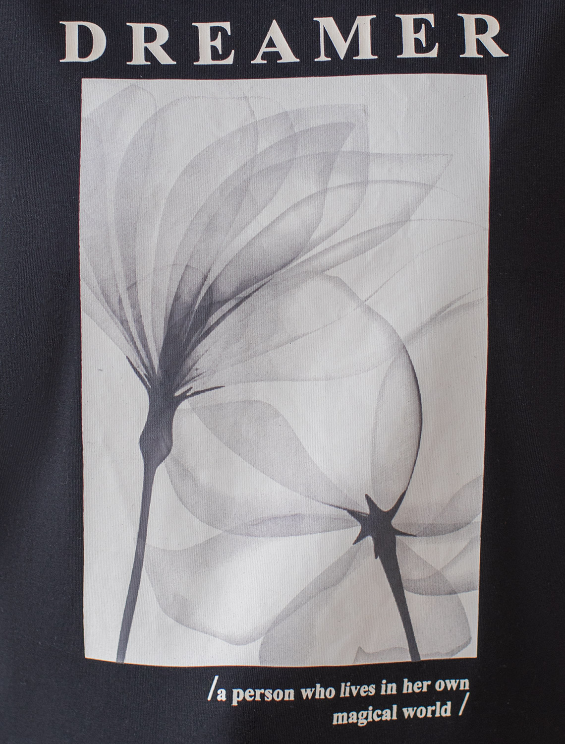 Футболка выполнена из премиального хлопка. Авторский принт нанесен красками с устойчивым покрытием. Перевод: «Dreamer - a person who lives in her own magical world - Мечтатель — человек, который живет в своем волшебном мире» Наличие эластана в составе гарантирует абсолютный комфорт и долговечность изделия. Базовая модель впишется в любой гардероб. Дополнительным украшением служит металлическим логотипом бренда. 92%Хлопок 8%ПУ