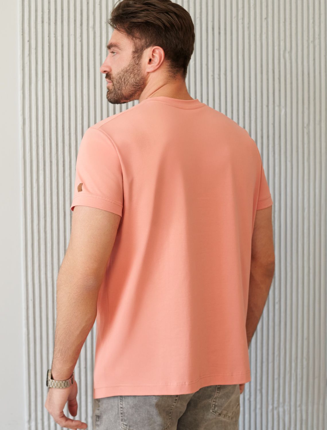 Футболка выполнена из премиального хлопка с эластаном. Авторский принт нанесен фактурными красками с устойчивым покрытием. Изделие комфортно сидит по фигуре, не сковывая движений. За счет среднего объема, хорошо подойдет как первый слой под пиджак, кардиган или бомбер. На рукаве нашивка из эко-кожи с логотипом бренда.